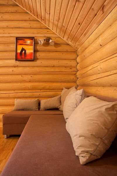 Современные двухэтажные деревянные домики идеально подойдут для отдыха семей с детьми, небольших компаний, то есть, практически для всех. Благодаря оптимальной планировке и современной мебели владельцы базы отдыха создали приятную атмосферу комфорта. Есть мини-кухня, гостиная с мягким уголком, индивидуальный санузел.