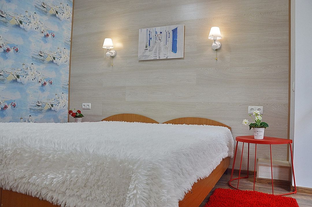 Номера «Стандарт» с размещением 1-2 человека, имеют свой индивидуальный вход и расположены на 1-1,5 этажах с главного фасада. Площадь 12-14 м2 + балкон.