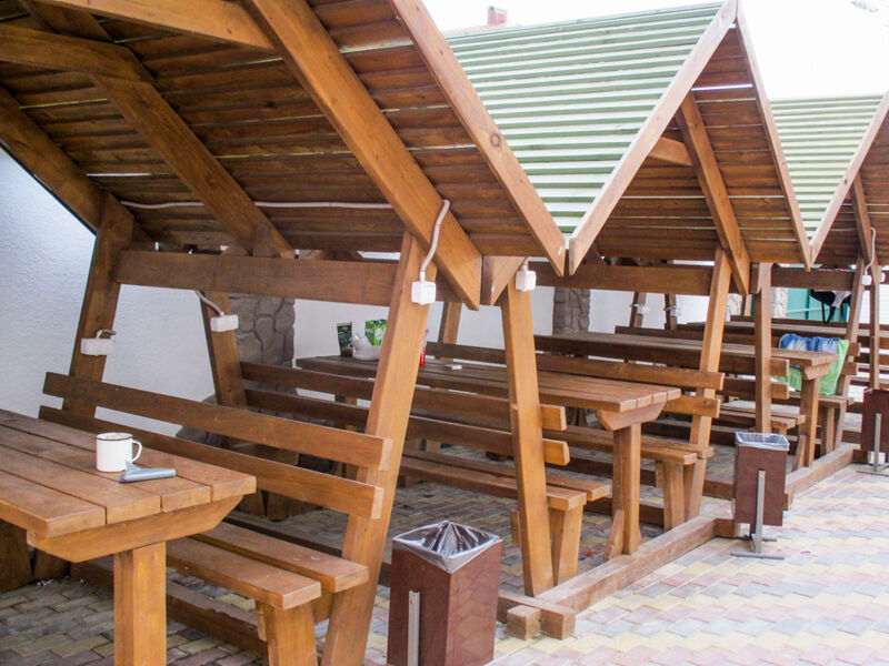 В непосредственной близости с гостевым домом: столовая, продовольственный магазин, охраняемая автостоянка и экскурсионное бюро. В 3 минутах ходьбы - остановка общественного транспорта, за 10 минут можно доехать до аквапарка, за 20 - до Евпатории. В пешей доступности находится известное целительное грязевое озеро.