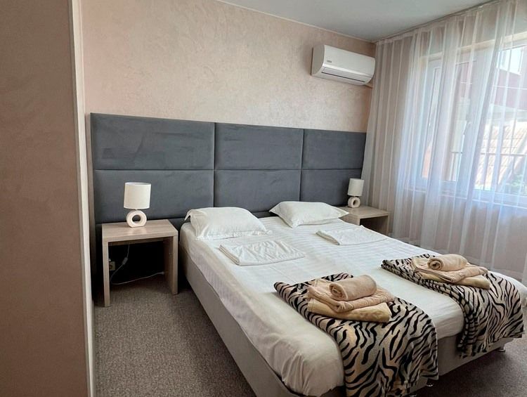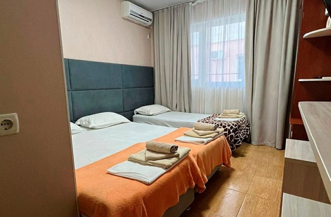 Номера чистые, аккуратные, каждый день - влажная уборка, только надо ключи оставлять на ресепшн. Для трёх звёзд - просто роскошный отель, оправдывает своё название - Релакс. Если сравнивать, например с Кипром, где вода в дефиците, то тут нет никаких проблем. Маловато полочек в номере. Нехватка двухместных простыней. Стелили одноместные, а они сбиваются. Бесплатно вывозят на лечебное грязевое озеро. Пляж на лечебном озере не благоустроенный.