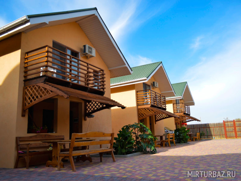 Проживание предоставляется в двухэтажных коттеджах, которые построены из натуральных материалов. Всего таких коттеджей шесть.