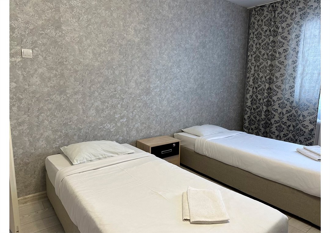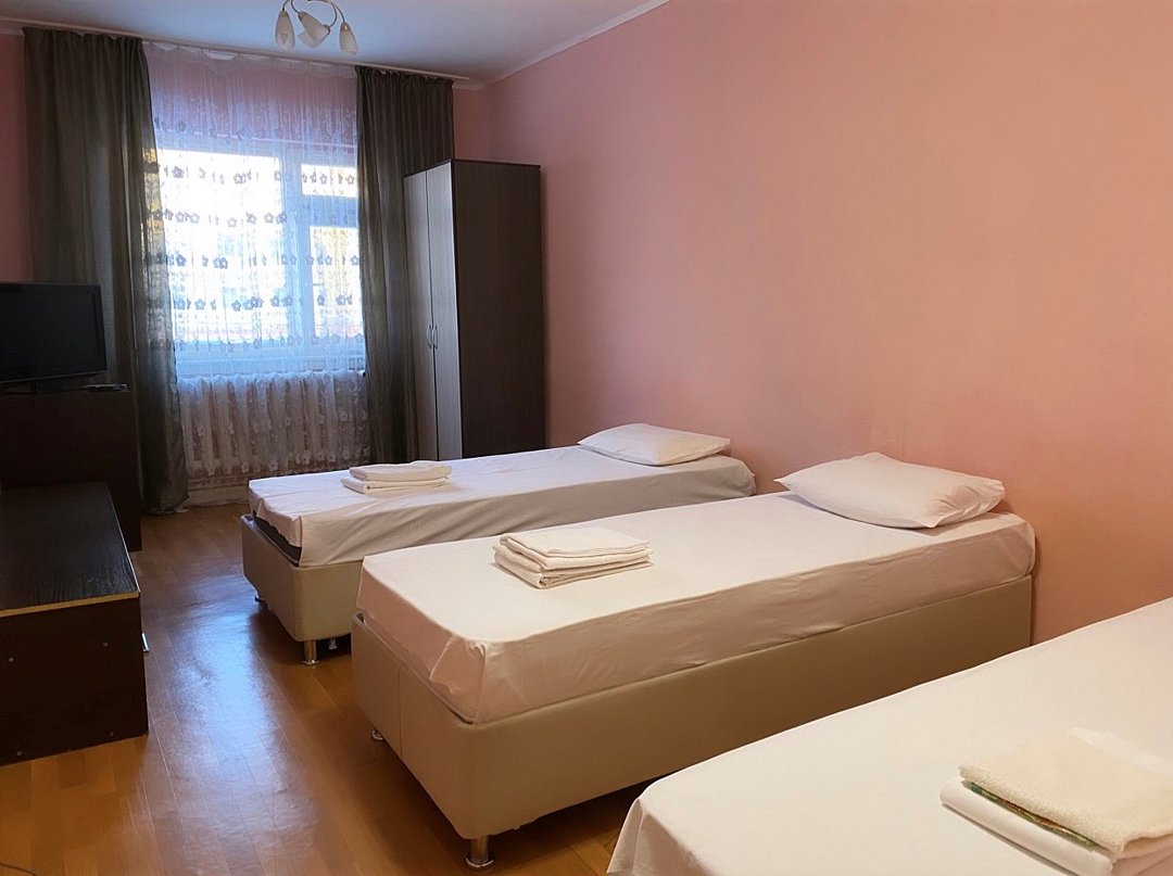 телевизор, Wi-Fi, холодильник, светильник, фен, электронные замки, микроволновая печь, утюг, душевая кабина, теплый пол, банные принадлежности, халаты, банные полотенца, тапочки, гигиенические средства, косметические средства, тумбы, стулья, шкаф для одежды, обеденный стол, зеркало, две комнаты, чайный набор, набор посуды, чайник, унитаз, раковина, питьевая вода, отопление, вид на город, три односпальные кровати, общая ванная комната, вид во двор, паркет, кухонная посуда, стаканы, кухонная утварь, стул, стол, тумба, туалетные средства, туалет, телевизор с плоским экраном, мини-холодильник, мини-кухня, кухонный уголок, москитная сетка, гостиничная парфюмерия, вид на горы, телевизор со Smart TV, номер для некурящих, холодильный шкаф, электронный консьерж 24/7, гигиенический душ, морозильная камера, чайная станция, уборка номера, услуги прачечной (платно), бутилированная вода, приветственная фруктовая тарелка в номер, частный двор, мыло, затемняющая штора, открытый шкаф, без питомцевВ номере