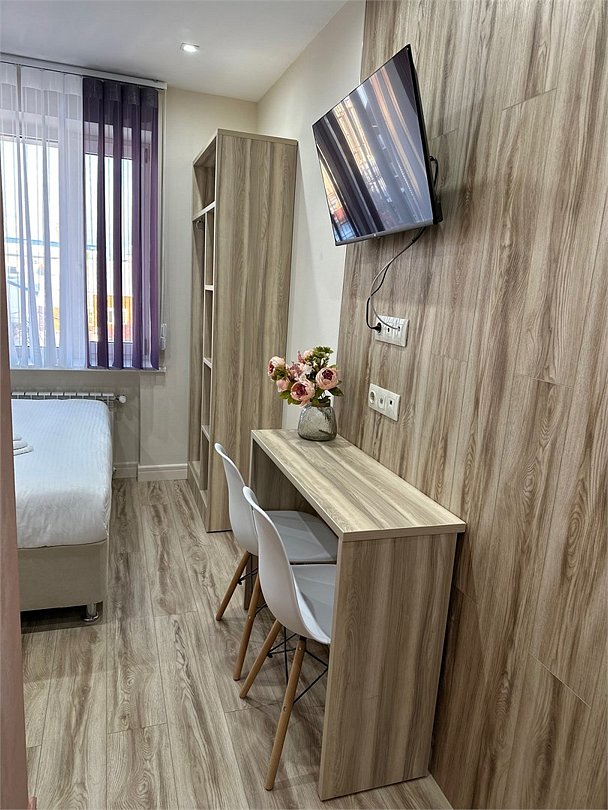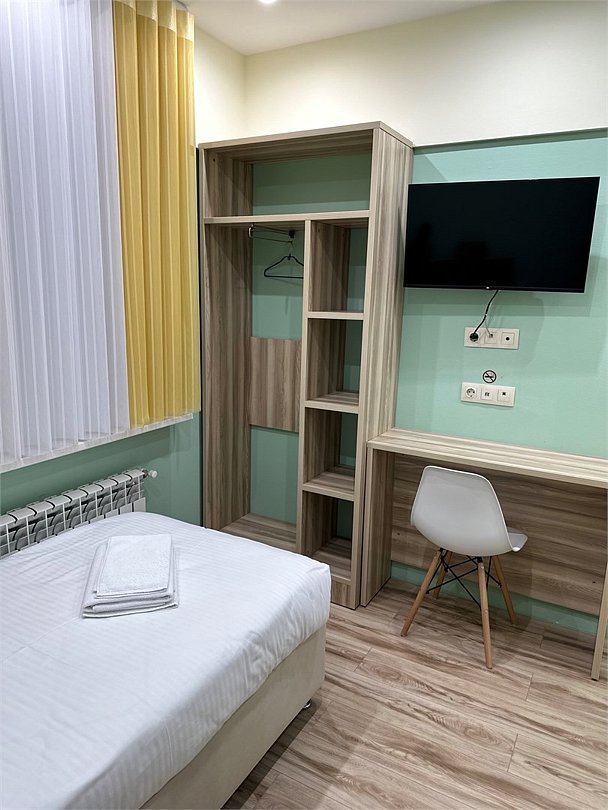 телевизор, Wi-Fi, холодильник, светильник, фен, электронные замки, микроволновая печь, утюг, душевая кабина, биде, теплый пол, халаты, банные полотенца, тапочки, гигиенические средства, косметические средства, односпальная кровать, тумбы, стулья, зеркало, кухня, чайный набор, набор посуды, чайник, унитаз, раковина, питьевая вода, отопление, вид на город, кулер на этаже, вид во двор, паркет, кухонная посуда, стаканы, кухонная утварь, столовые приборы, стол, тумба, туалетные средства, телевизор с плоским экраном, мини-холодильник, мини-кухня, гостиничная парфюмерия, вид на горы, телевизор со Smart TV, пуфик, рабочий стол, холодильный шкаф, электронный консьерж 24/7, гигиенический душ, оснащение для гостей с ограниченными возможностями, чайная станция, уборка номера, набор для приготовления чая и кофе, услуги прачечной (платно), вешалки-плечики, бутилированная вода, приветственная фруктовая тарелка в номер, частный двор, мыло, открытый шкаф, прачечная (за дополнительную плату), без питомцевВ номере