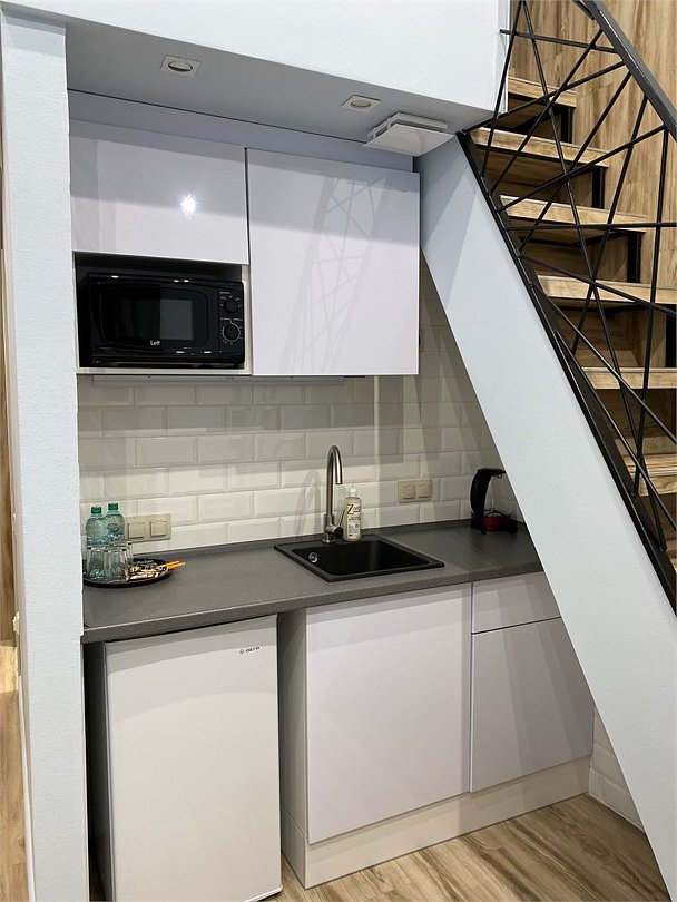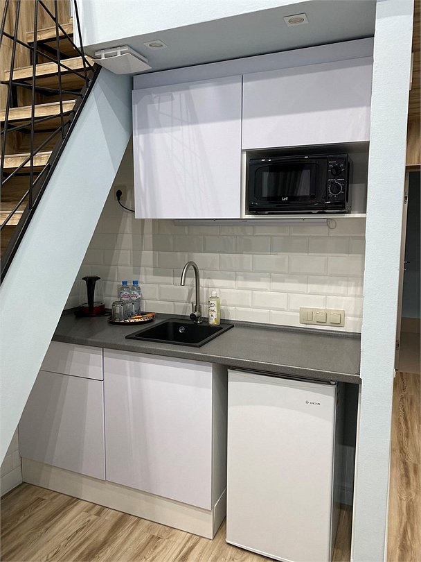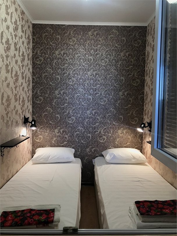 Трёхместный двухуровневый номер. Имеется кухонная зона. Мини-холодильник. Чайная станция. Собственная ванная комната. Высокоскоростной Wi-Fi.Услуги и удобства