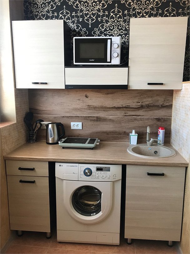 телевизор, кабельное телевидение, Wi-Fi, холодильник, фен, плита для приготовления пищи, микроволновая печь, утюг, душевая кабина, санузел, водонагреватель, балкон, односпальная кровать, гладильная доска, шкаф для одежды, вешалки, обеденный стол, зеркало, комод, мебельный гарнитур, кухня, набор посуды, посудомоечная машина, стиральная машина, чайник, унитаз, раковина, отопление, общая ванная комната, вид во двор, кухонная посуда, стаканы, столовые приборы, стул, туалетные средства, туалет, раскладной диван, телевизор с плоским экраном, кухонный уголок, номер для некурящих, холодильный шкаф, гигиенический душ, духовой шкаф, морозильная камера, духовка, двуспальный раскладной диван-кровать, мыло, без питомцевВ квартире