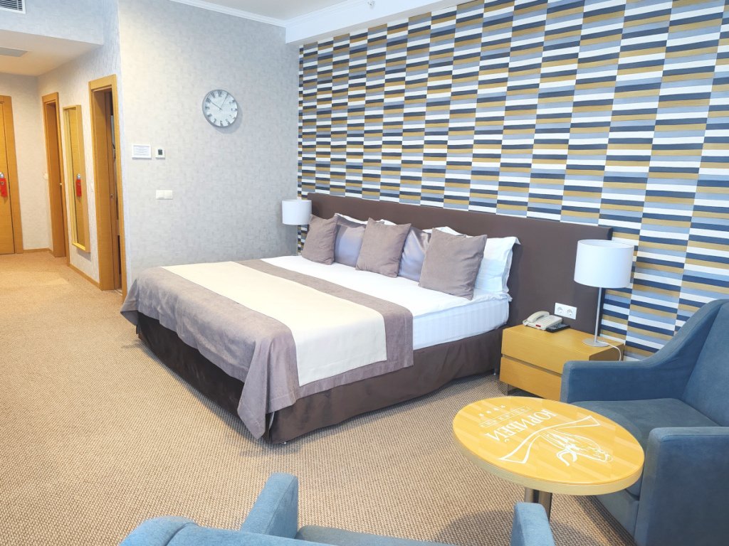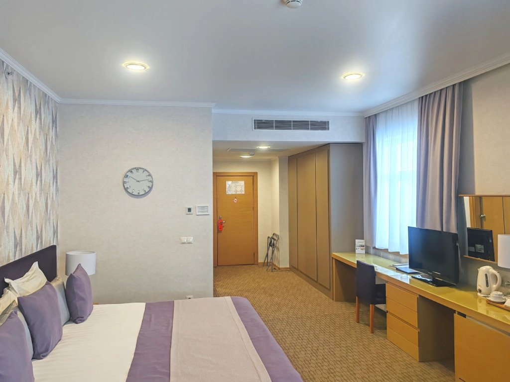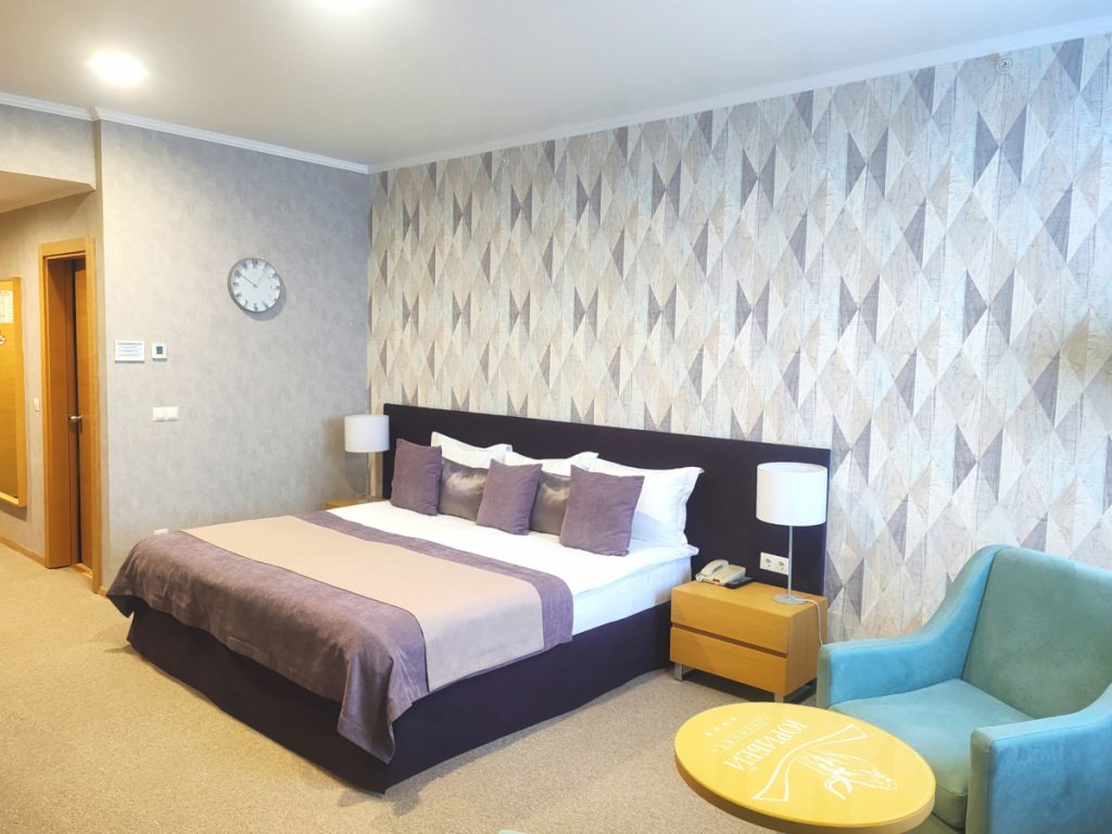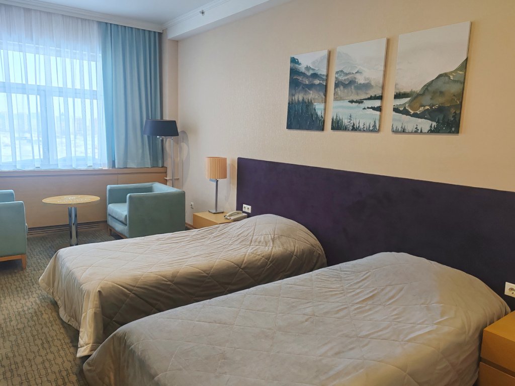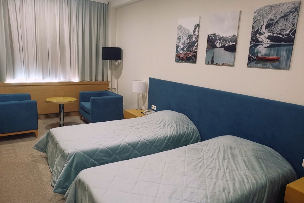 Номер уютно обставлен и оснащён необходимым, чтобы отдохнуть после долгого и насыщенного дня. Имеются телевизор. Перечисленные услуги есть не во всех номерах.
