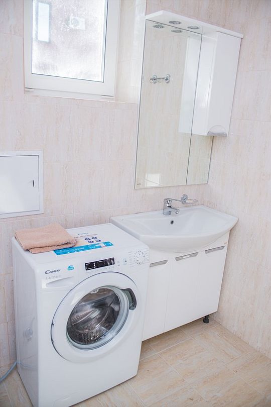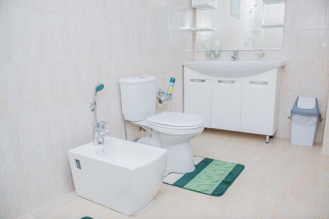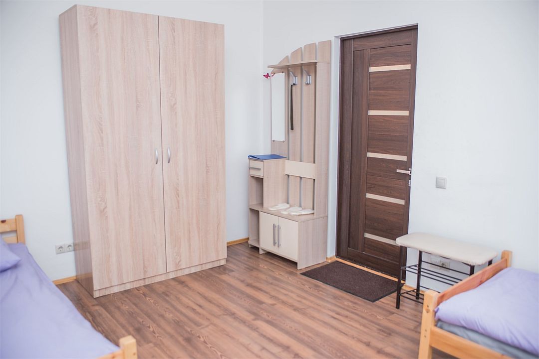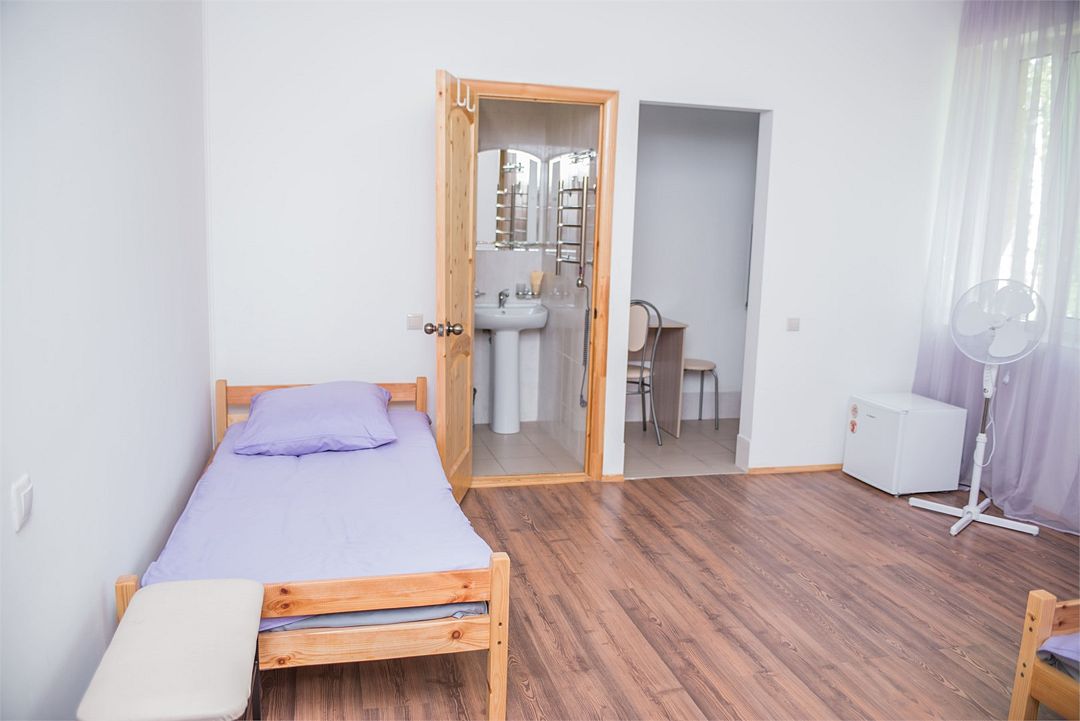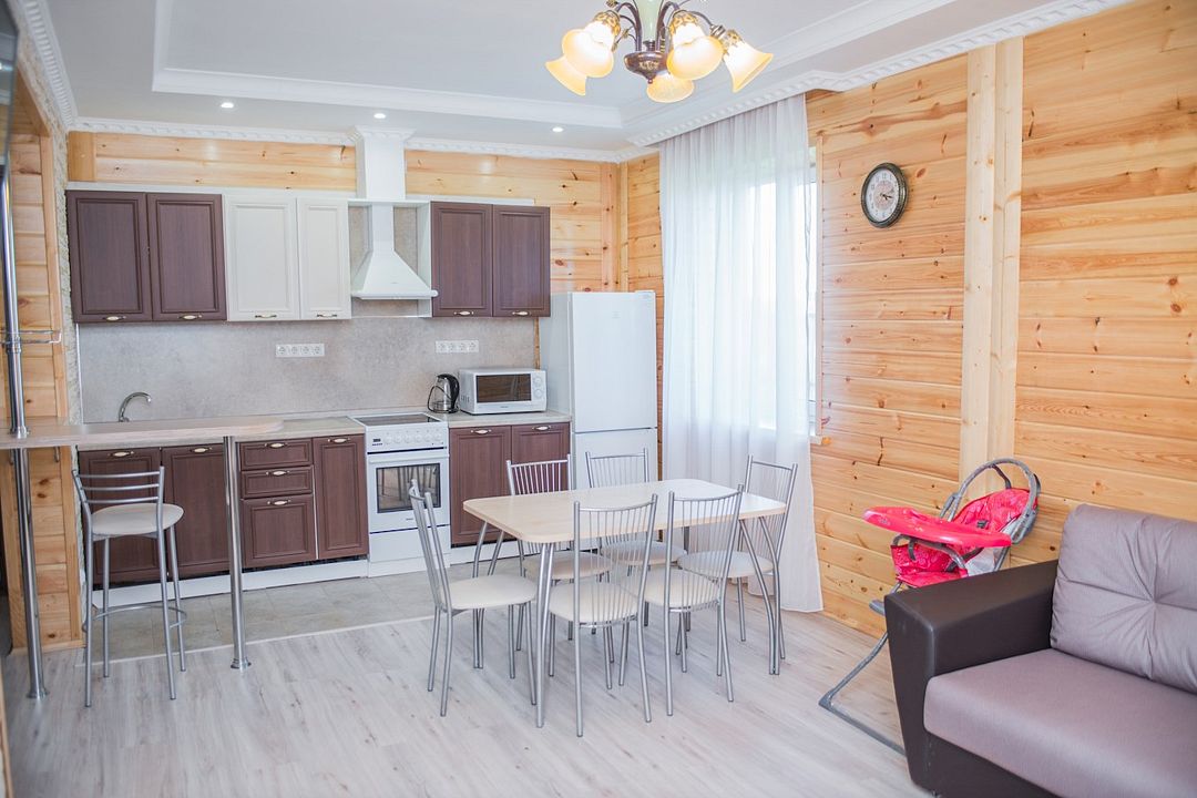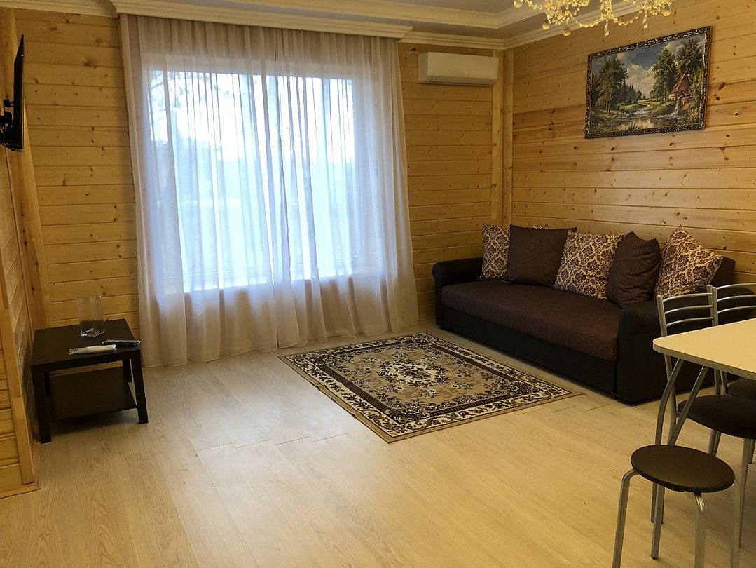 Просторный номер с обеденной зоной (без плиты), спальней и собственным санузлом. В номере две кровати: двуспальная и отдельная детская. Преимущества номера: тёплый пол, кондиционер, горячая вода, wi-fi.