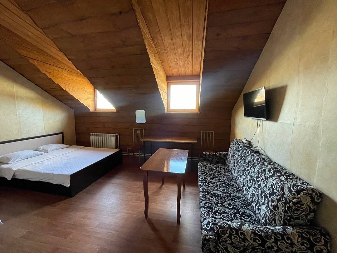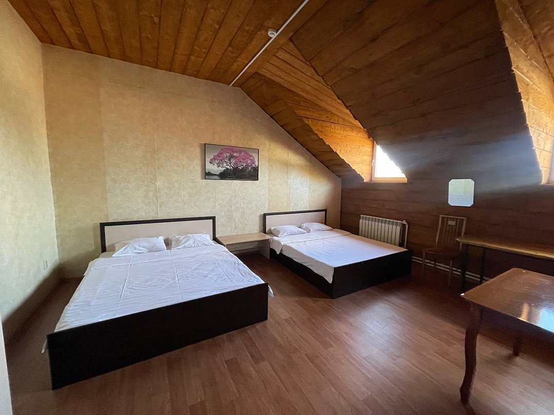 Коттедж вмещает до шести человек на основном месте и четыре на дополнительном. При выборе половины коттеджа возможно размещение трех человек на основном месте и одного на дополнительном.