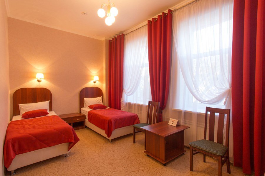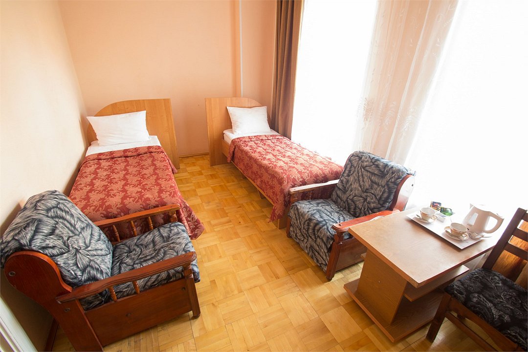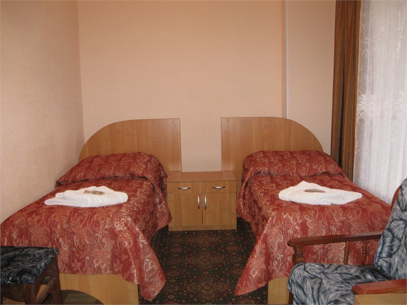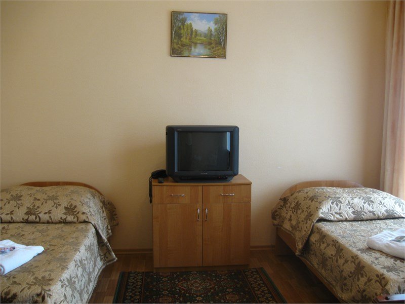 Однокомнатный двухместный номер площадью 12-19 м2 с двумя односпальными кроватями. В номере телевизор, телефон, холодильник. В санузле душ, туалет, раковина.Услуги и удобства
