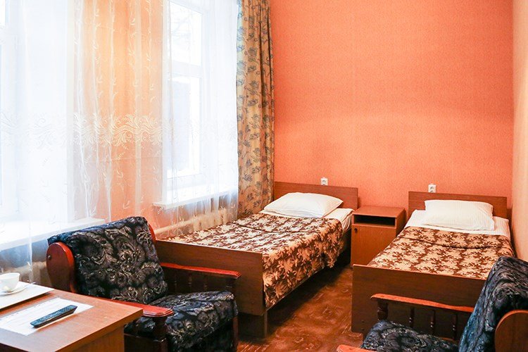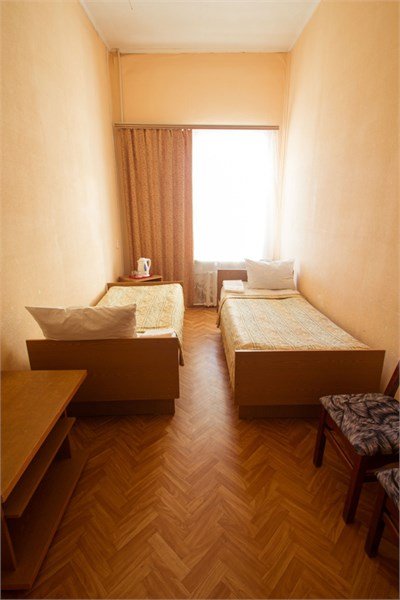 Однокомнатный двухместный номер площадью 12-13 м2. В номере две койко-места, телевизор. Санузел и три душа расположены на втором и третьем этажах гостиницы.Услуги и удобства