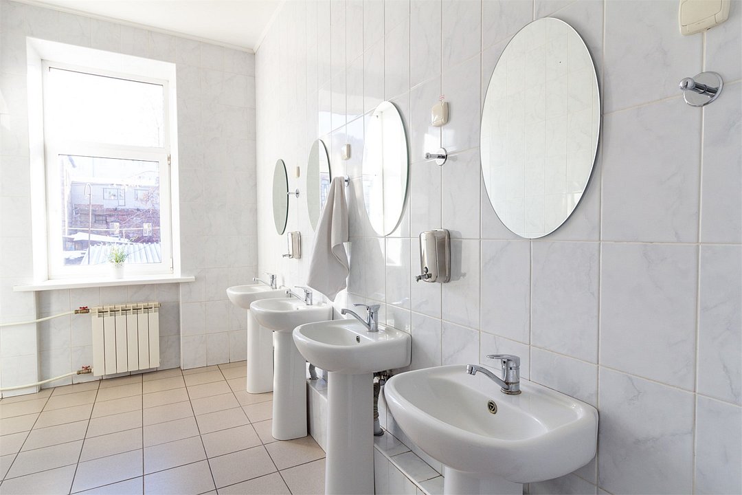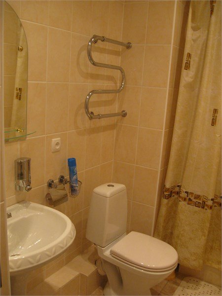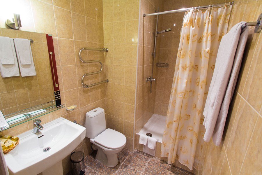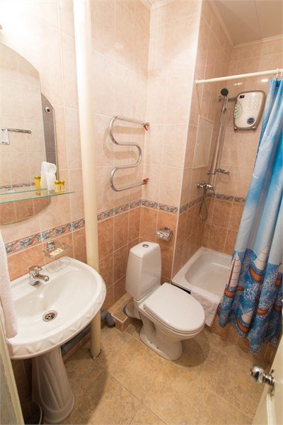 Санузел и три душа расположены на втором и третьем этажах гостиницы.