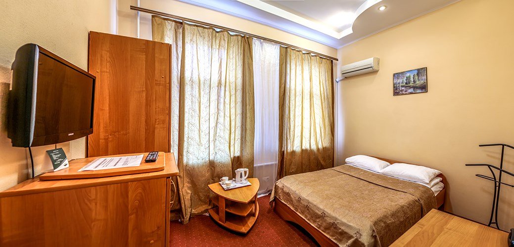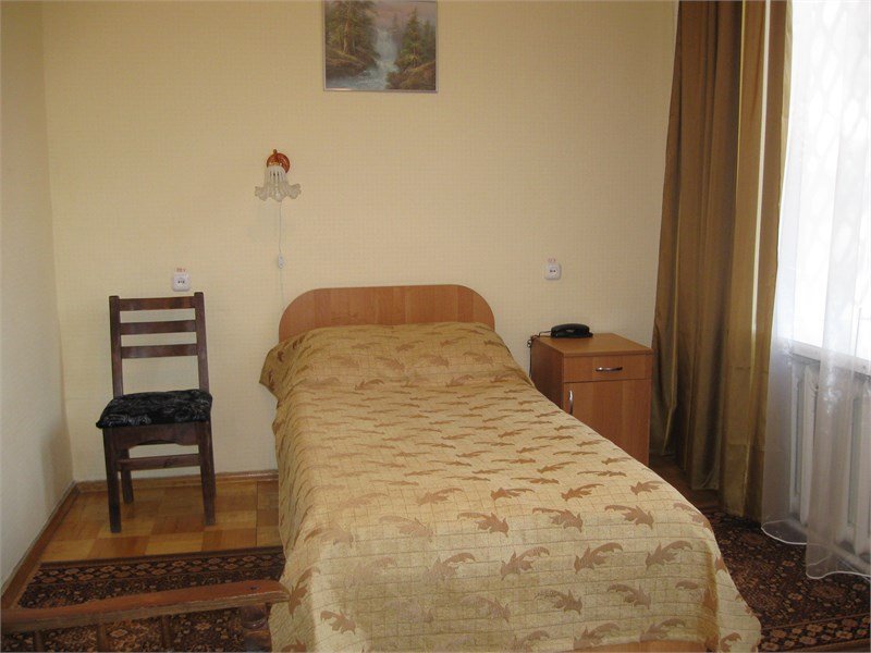 Однокомнатный одноместный номер площадью 7-11 м2. В номере односпальная кровать, телевизор. Санузел и три душа расположены на втором и третьем этажах гостиницы.Услуги и удобства