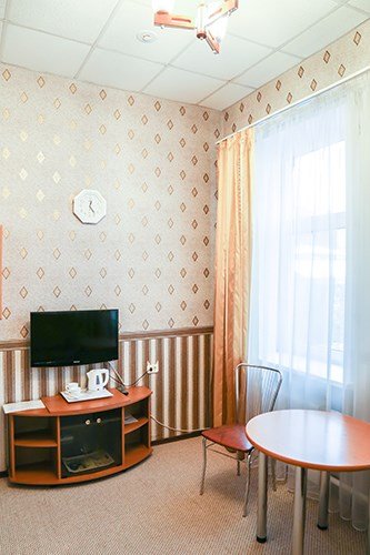 Номера самарского отеля «Волна» оформлены в теплых тонах и обставлены классической мебелью. В некоторых из них установлены телевизор, холодильник и электрический чайник, а также обустроена собственная ванная комната.