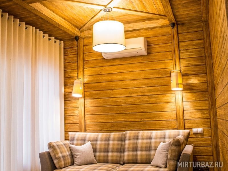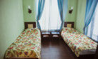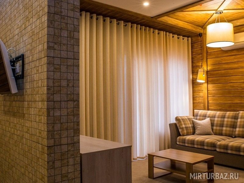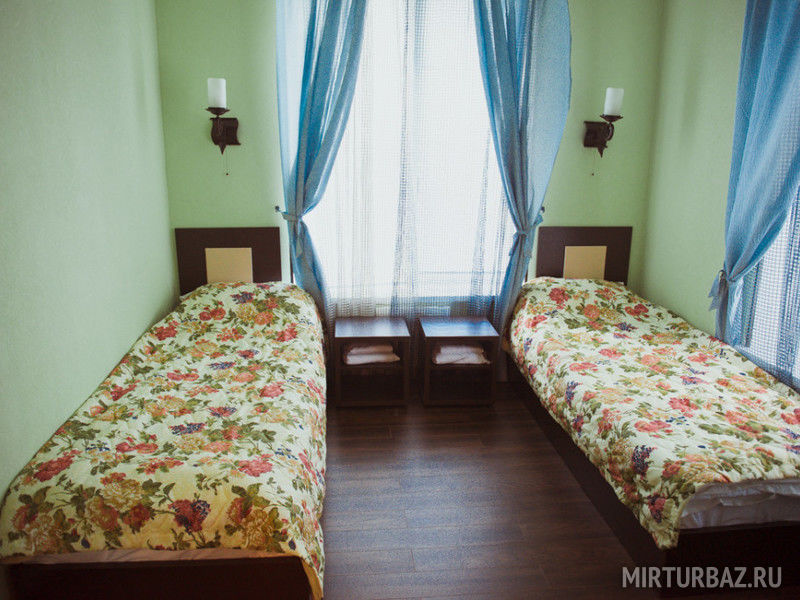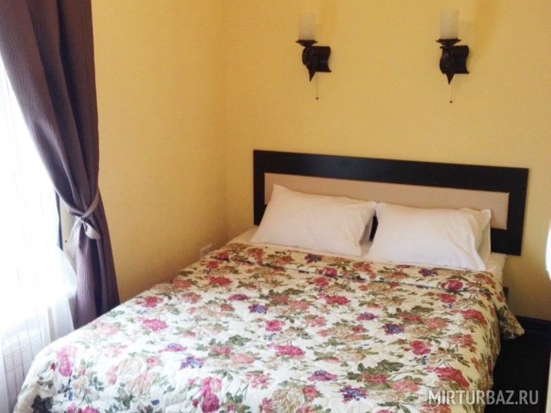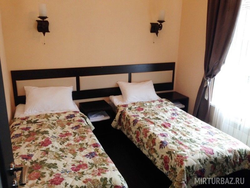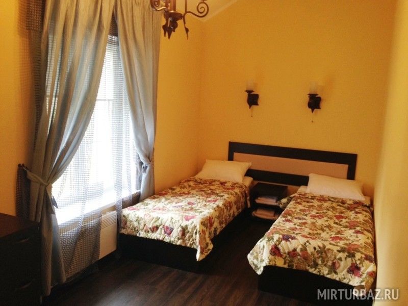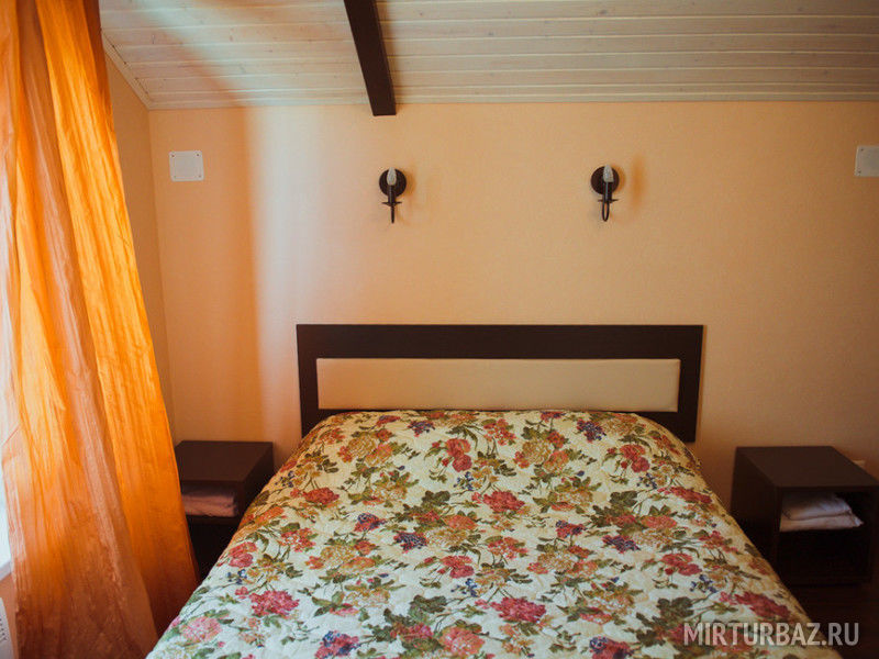 Домик рассчитан для проживания 4 человек. В одной из спален, установлена 2-х спальная кровать, в другой стоят 2 односпальные кровати. При необходимости, можно организовать дополнительные места, т.к. в гостиной располагается раскладной диван.