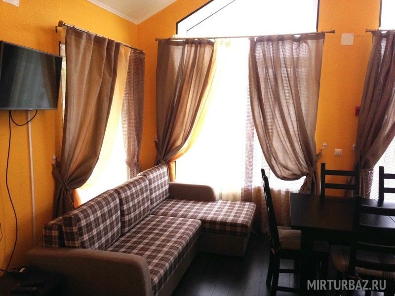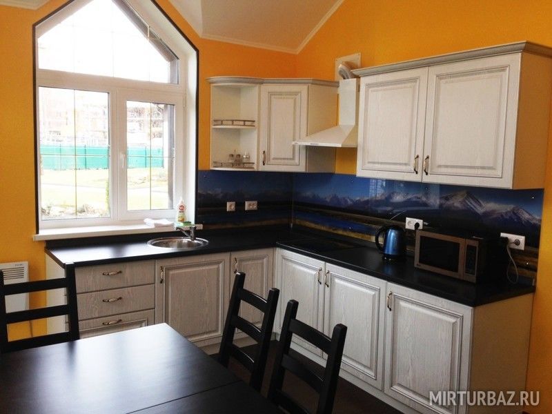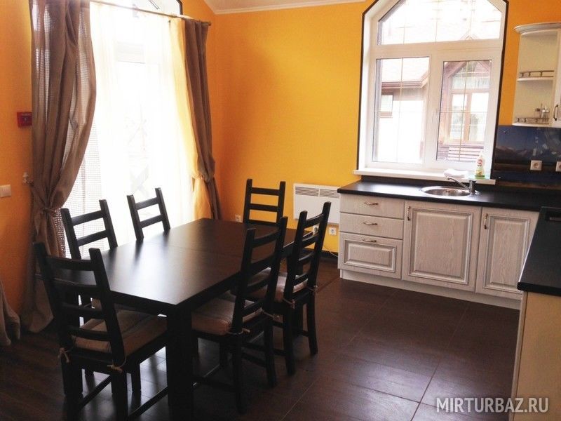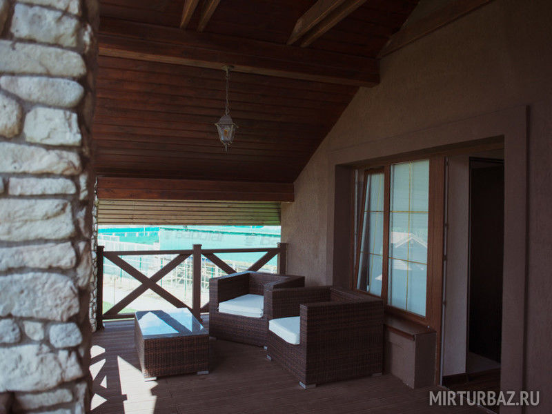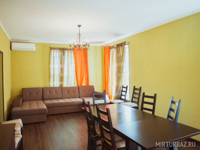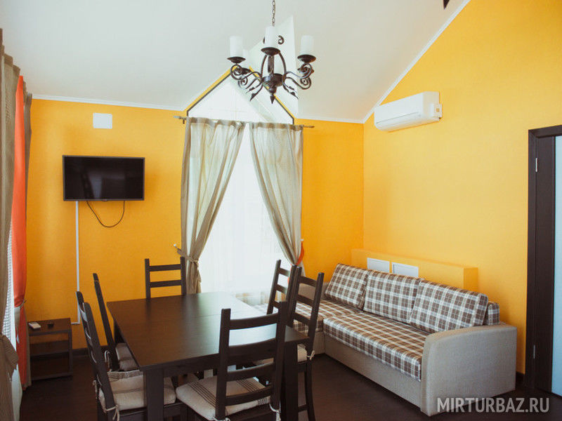 Домик рассчитан для проживания 8 человек. В двух спальнях, установлены 2-х спальные кровати, в двух других спальнях стоят односпальные кровати. При необходимости, можно организовать дополнительные места, т.к. в гостиной располагается большой раскладной диван.