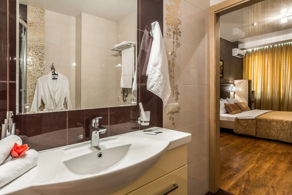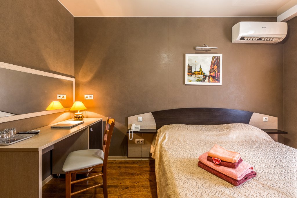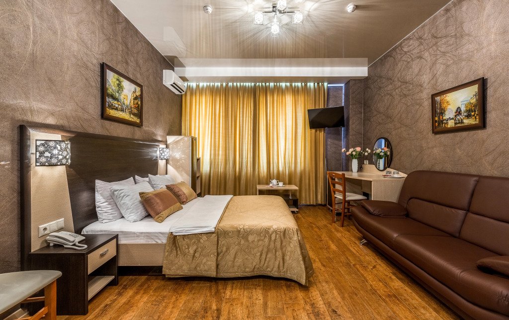 Номер уютно обставлен и оснащён необходимым, чтобы отдохнуть после долгого и насыщенного дня. Имеются телевизор. Оснащение зависит от выбранной категории номера.