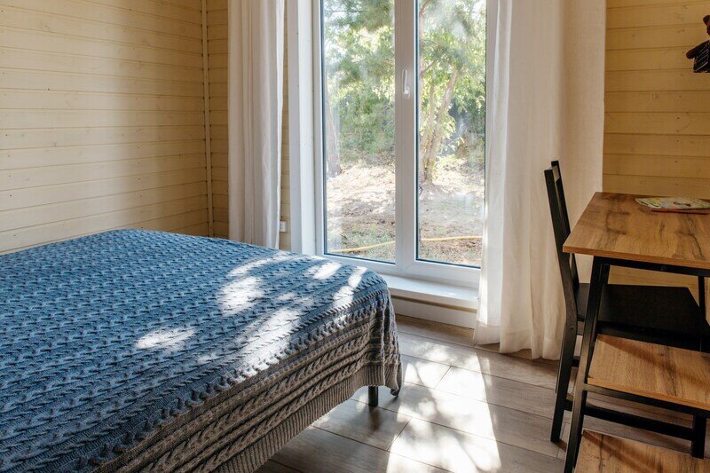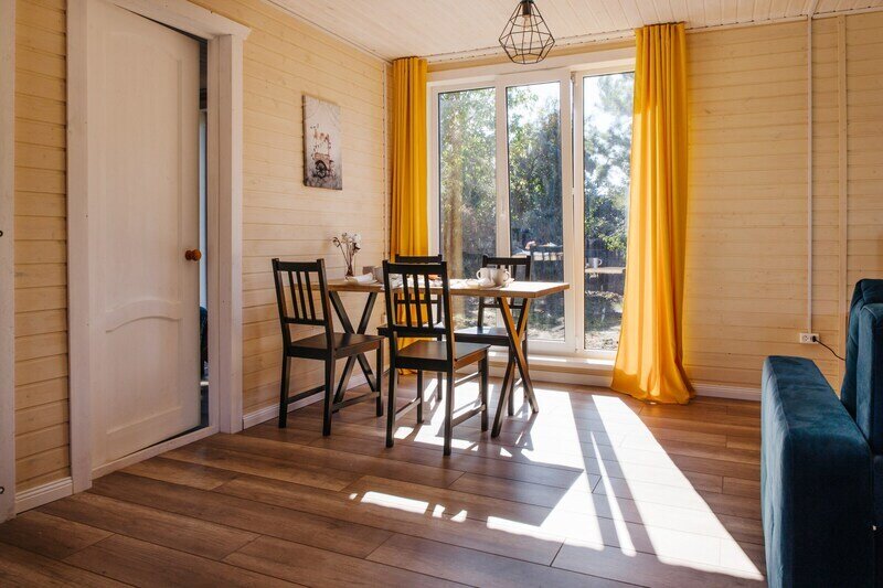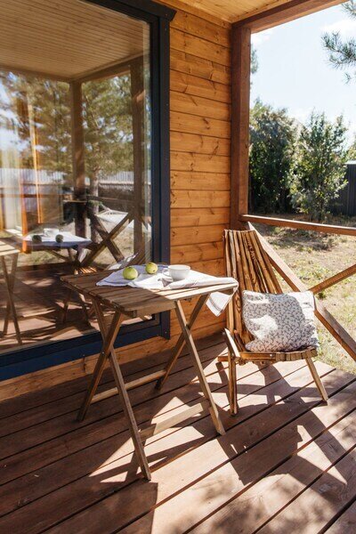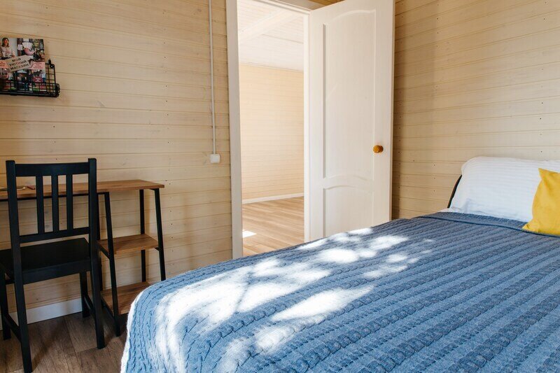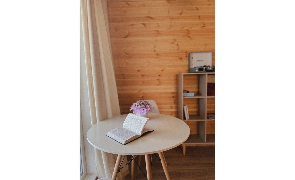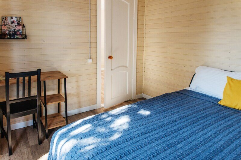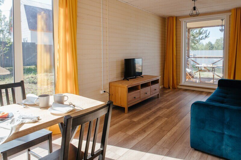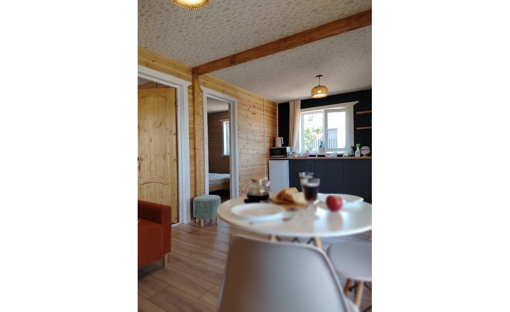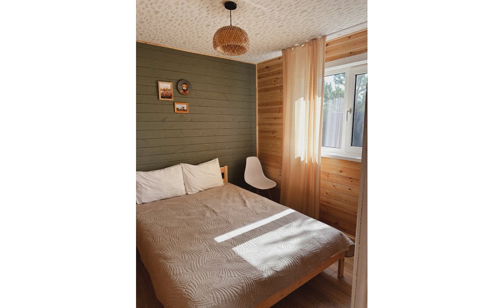 Для проживания доступен уютный дом с двумя отдельными спальнями, санузлом, кухней гостиной, тремя панорамными окнами и верандой. В доме также есть настольные игры, книги и виниловый проигрыватель с пластинками, который создаст особенную атмосферу.