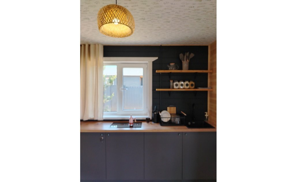 В доме есть холодильник, микроволновка, электроплитка, раковина, необходимая мебель, посуда, чистое белье, несколько книг и настольных игр.