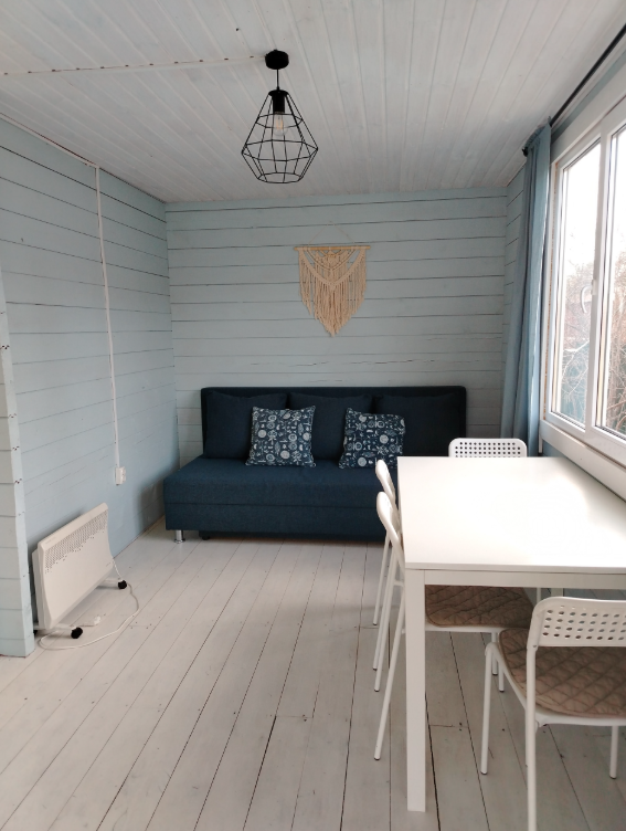 Дом 54 м² с продуманным интерьером, сделанным с любовью. Вмещает 5 взрослых + ребёнка. В гостиной теплый пол.