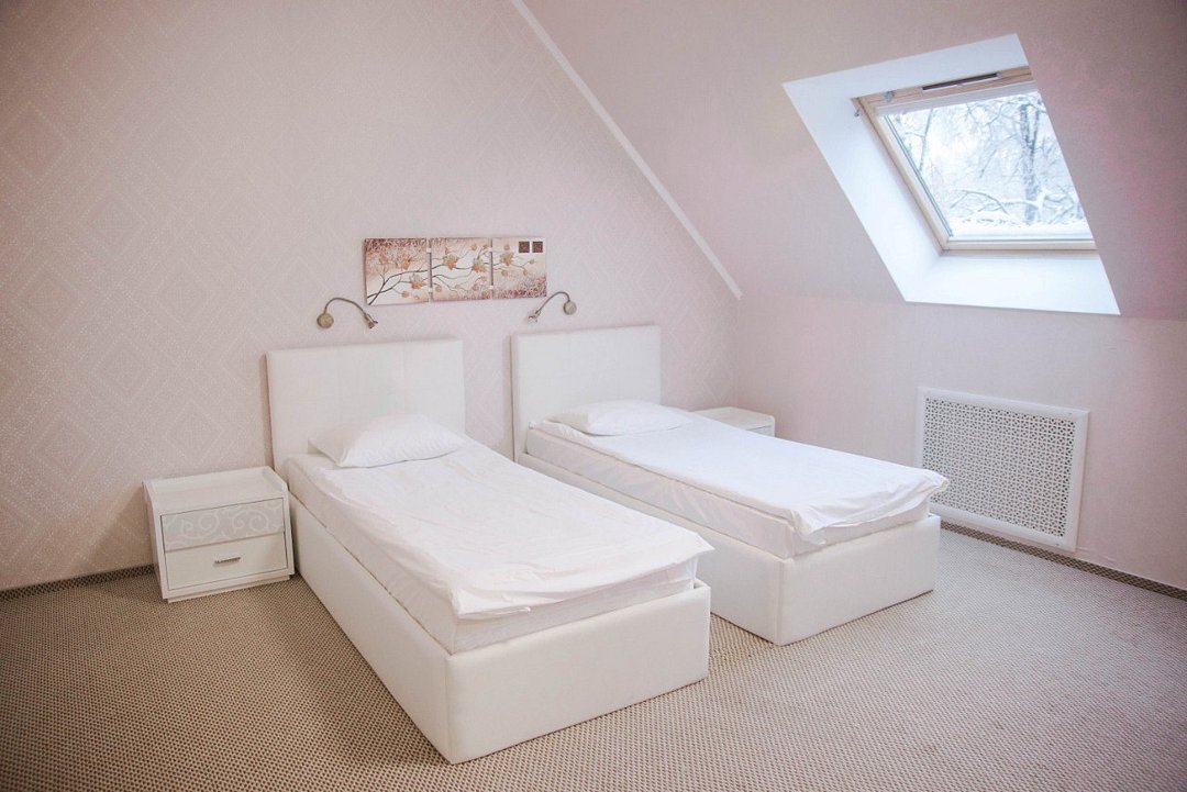 Wi-Fi, телефон, кондиционер, светильник, настольные лампы, фен, электронные замки, санузел, банные полотенца, тапочки, гигиенические средства, две односпальные кровати, тумбы, стулья, шкаф для одежды, вешалки, журнальный столик, письменный стол, багажная тумба, зеркало, письменные принадлежности, чайный набор, набор посуды, обслуживание номеров, унитаз, раковина, питьевая вода, отопление, душ, кулер на этаже, стаканы, туалетные средства, вид на парк, внутренний телефон, телевизор с плоским экраном, мини-холодильник, москитная сетка, вид на озеро, мансардные окна, номер для некурящих, общественный бассейн, антибактериальное средство для рук, холодильный шкаф, гигиенический душВ номере