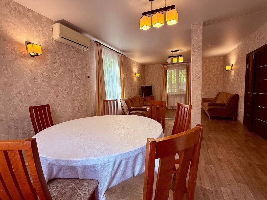 Просторный двухэтажный коттедж площадью 100 м² с собственной террасой и мангальной зоной - идеальное решение для отдыха большой компанией в Самаре или проведения мероприятий. Вмещает до 10 гостей и подходит для празднования свадеб, дней рождений, корпоративов и семейных встреч. На территории коттеджа - всё для комфортного пребывания: уединенная обстановка, вид на парк, современная мебель и функциональные зоны.Или нужно забронировать сразу несколько номеров? Вы можете оставить письменную заявку и мы поможем составить бронирование на основе Ваших особых пожеланий.
