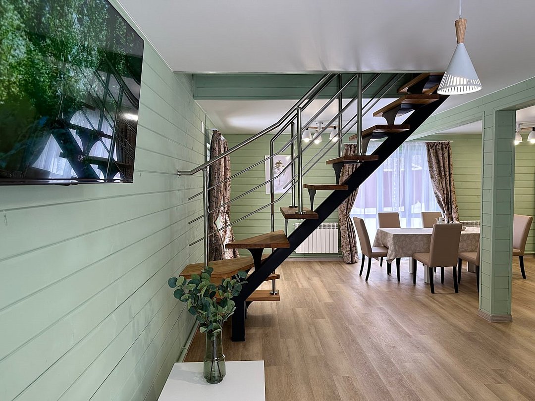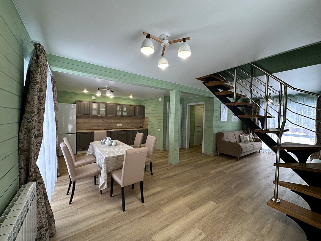 Светлый и просторный двухэтажный коттедж площадью 100 м² с свежим ремонтом - идеальное решение для семейного отдыха в Самаре или размещения дружеской компании. Уютный интерьер, панорамные окна с видом на лес и современная отделка создают атмосферу уединенного комфорта. Вместимость - до 8 гостей, что делает коттедж популярным выбором для многодневных праздников или отпуска с детьми.Услуги и удобства