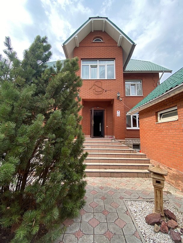 Коттедж представляет собой трехэтажное кирпичное здание.