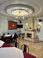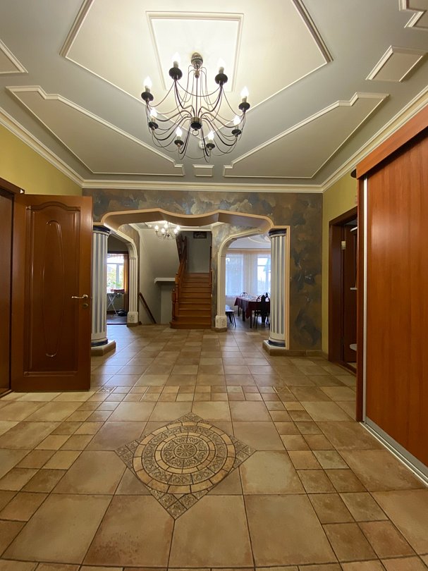 От центрального входа расположен холл, сделанный в дизайнерском стиле плавно переходящий в каминный зал с банкетной зоной рассчитанный на 30 человек. В доме также имеется полупрофессиональная кухня, которой вы можете воспользоваться при ее необходимости.