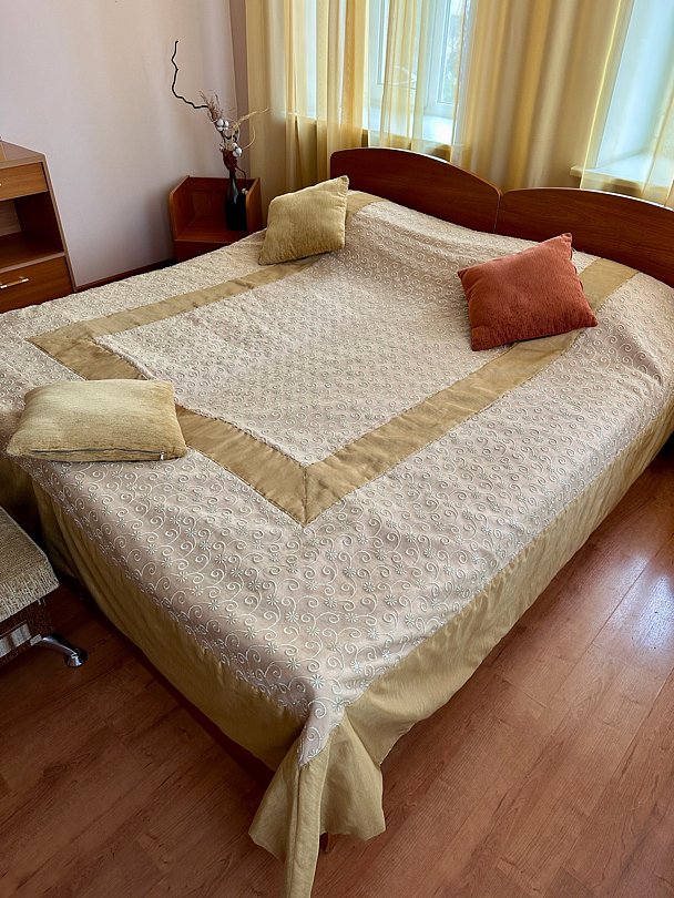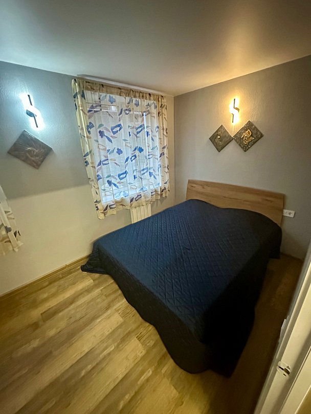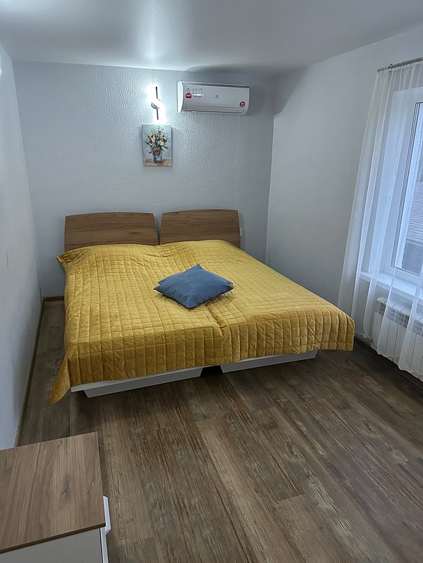 В доме на первом этаже расположены 1 спальная комната, в которой одна двуспальная кровать и двуспальный диван. Полностью оборудованная кухня-гостиная. По коридору дальше находятся санузел и баня на газу (оплачивается отдельно).