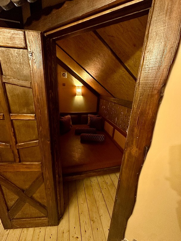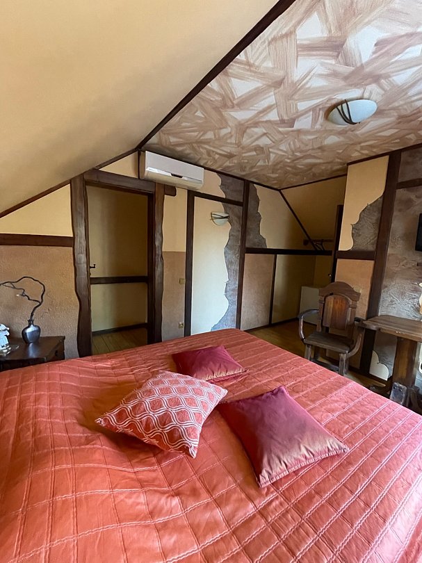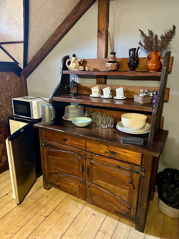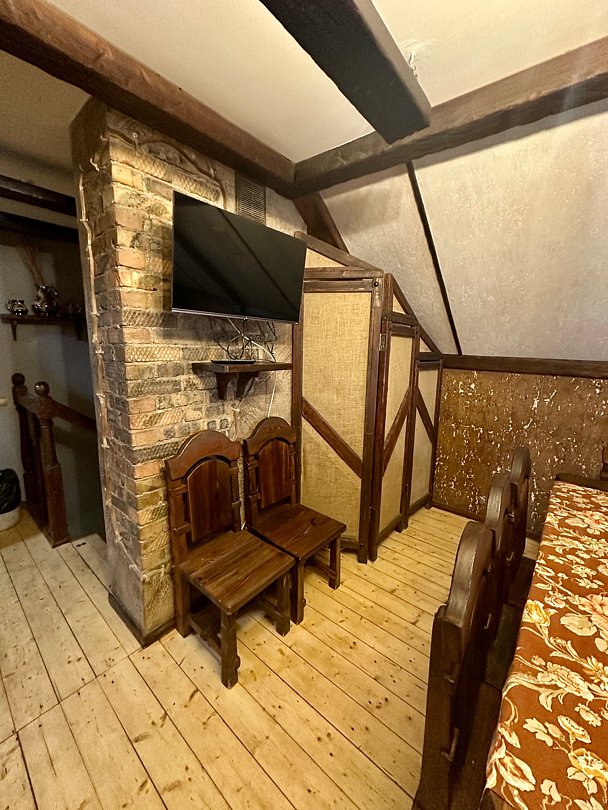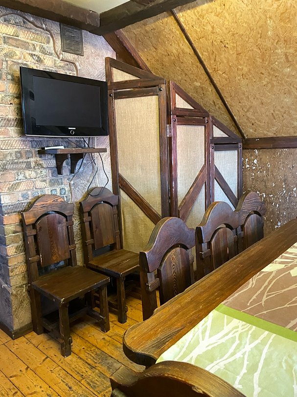 На верхнем этаже находятся 4 гостиничных номера, оснащенные: кондиционером, телевизором и всем необходимым для комфортного времяпровождения.