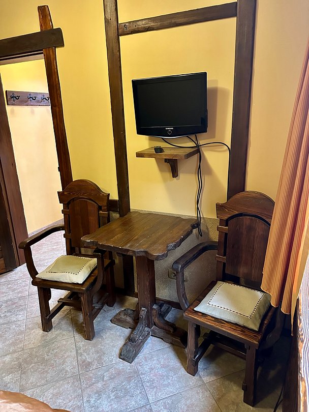 В первом номере расположена двуспальная кровать и телевизор, санузел с душевой кабиной.
