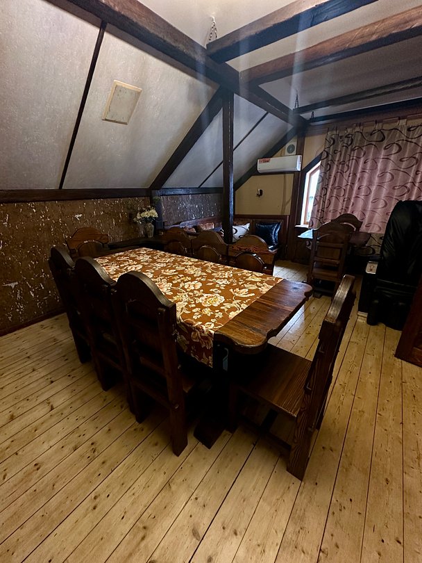 На втором этаже расположена общая комната с большим столом на 10 персон, в которой вам будет тепло и уютно.
