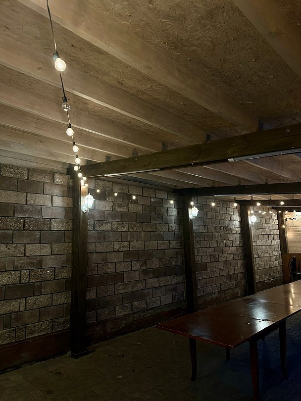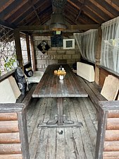 Большая деревянная беседка на 60 человек, а также профессиональная мангальная зона. Беседка предназначена для проведения банкетов, свадьбы или выпускного вечера.