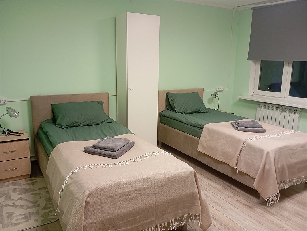 телевизор, Wi-Fi, две односпальные кровати, шкаф для одежды, зеркало, стул, стол, тумба, можно с питомцамиВ месте в номере