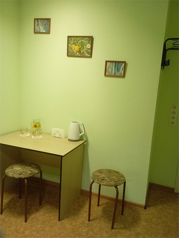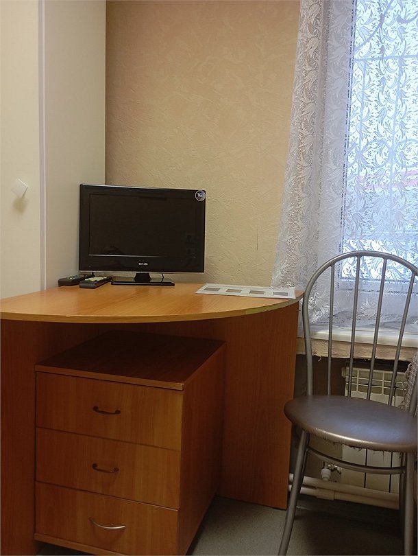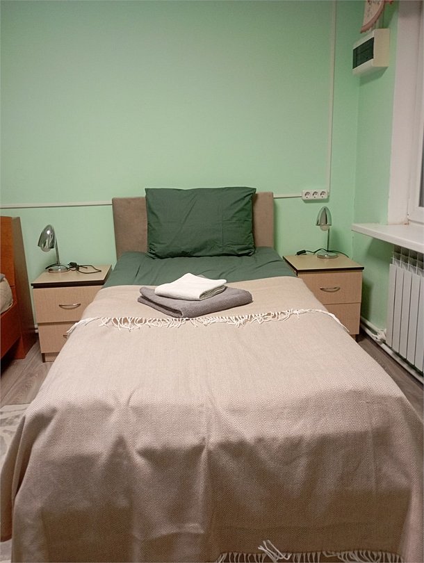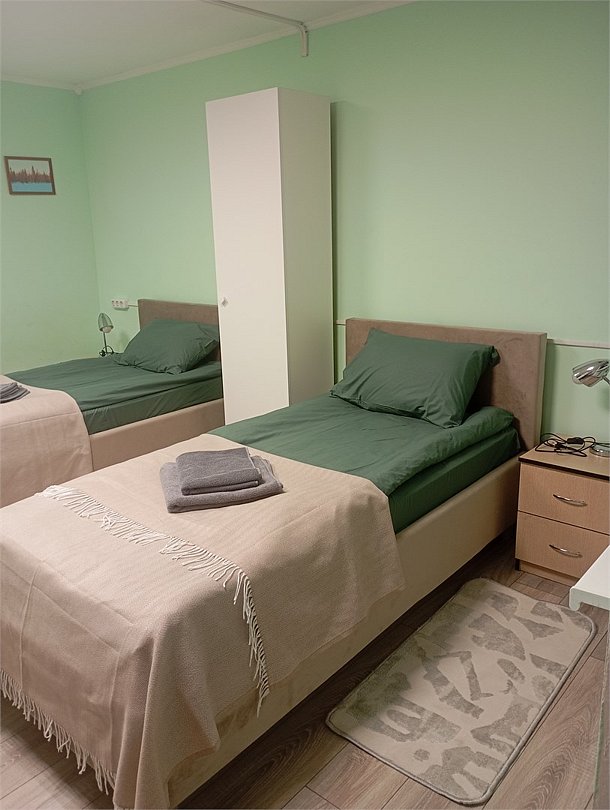 В просторной комнате присутствуют три удобных односпальных кровати с прикроватными тумбами, точка доступа Wi-Fi, телевизор. В номере так же расположены шкаф для личных вещей, вешалка для одежды, стол, стулья.Услуги и удобства