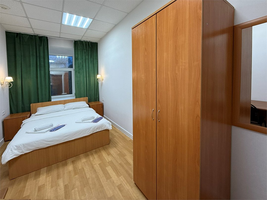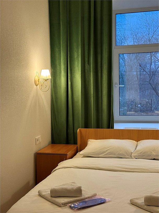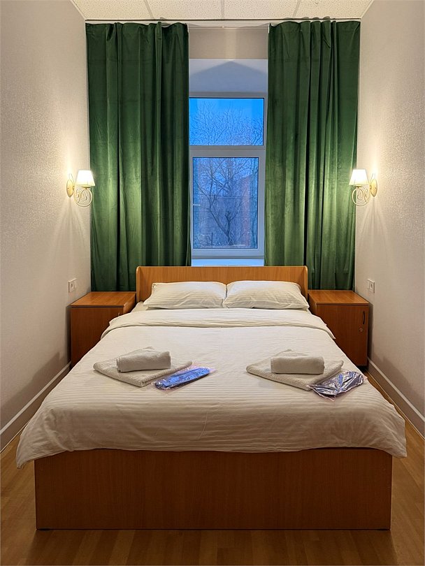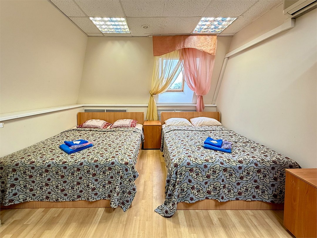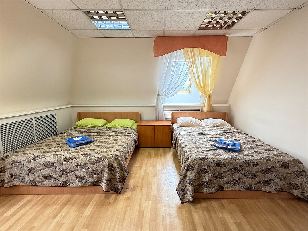 Уютный двухместный номер с двумя кроватями (160x200), идеально подходящий для друзей или коллег. В номере есть всё необходимое для комфортного проживания: -Холодильник -Стол со стулом -Шкаф для одежды -Зеркало Удобства ( душ и туалет) расположены на этаже, что делает номер доступным и удобным выбором для гостей, которые ценят экономию без ущерба для качества проживания.Услуги и удобства