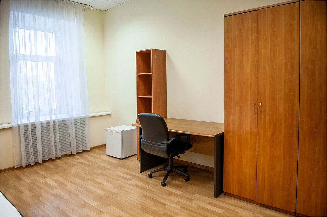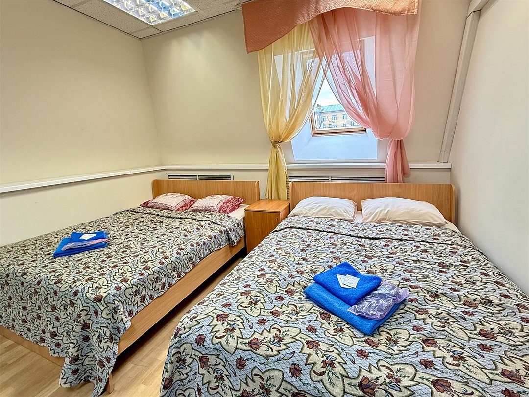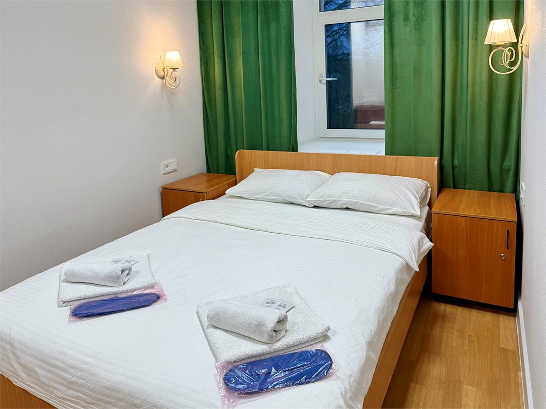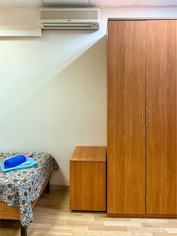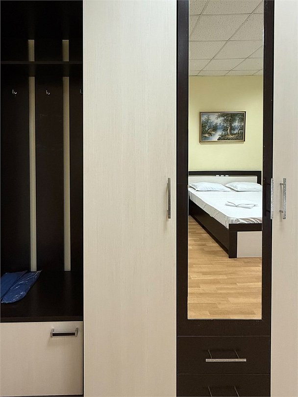 Уютный двухместный номер с двумя кроватями (160x200), идеально подходящий для друзей или коллег. В номере есть всё необходимое для комфортного проживания: -Холодильник -Стол со стулом -Шкаф для одежды -Зеркало Удобства ( душ и туалет) расположены на этаже, что делает номер доступным и удобным выбором для гостей, которые ценят экономию без ущерба для качества проживания.Услуги и удобства