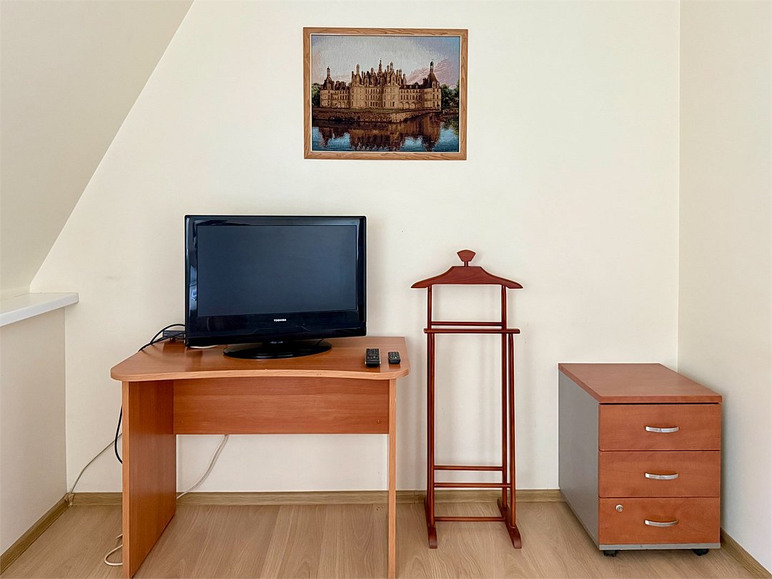 телевизор, Wi-Fi, интернет, кондиционер, фен, душевая кабина, халаты, тапочки, двуспальная кровать, тумбы, стулья, шкаф для одежды, журнальный столик, зеркало, чайный набор, чайник, унитаз, душ, вид на город, вид во двор, стол, туалет, диван-кровать, мини-холодильник, туалетные принадлежности премиум-класса, частный двор, мылоВ гостиничном номере