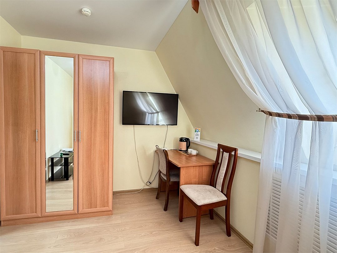 Wi-Fi, интернет, кондиционер, тапочки, односпальная кровать, две односпальные кровати, диван, тумбы, стулья, шкаф для одежды, зеркало, вид на город, общая ванная комната, вид во двор, стул, стол, санузел на этаже, мини-холодильник, душ на этаже, туалетные принадлежности премиум-класса, частный дворВ гостиничном номере