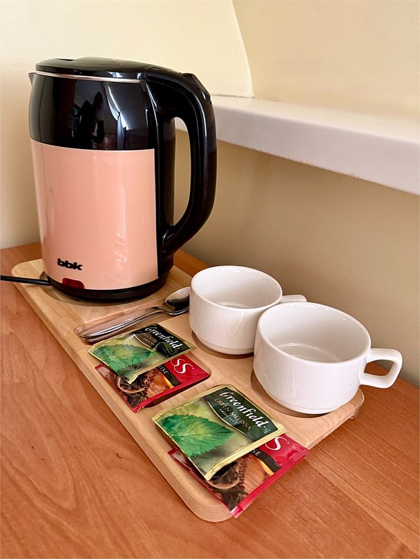 Wi-Fi, интернет, кондиционер, светильник, фен, тапочки, полутораспальная кровать, стулья, шкаф для одежды, зеркало, чайный набор, чайник, общая ванная комната, санузел на этаже, мини-холодильник, туалетные принадлежности премиум-класса, мылоВ гостиничном номере