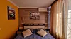 Каждый номер оборудован ортопедической двуспальной кроватью, гарантирующей полноценный отдых, а также прикроватными тумбочками и гардеробом для хранения личных вещей. Для гостей, ценящих функциональность, предусмотрен уголок с обеденным столом и стульями.