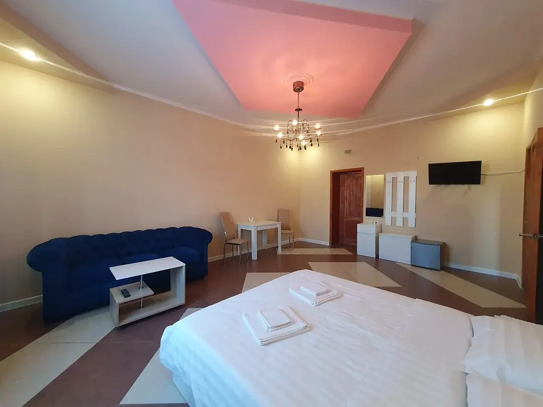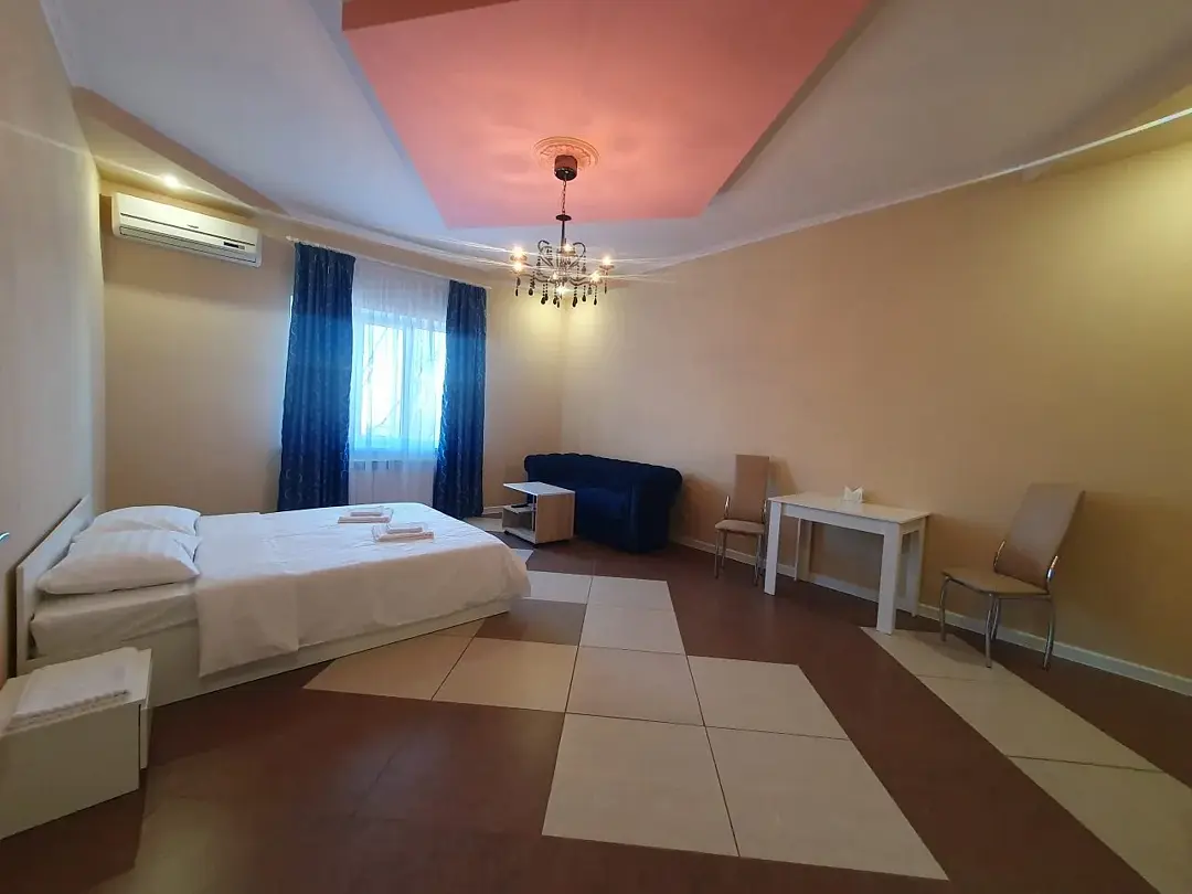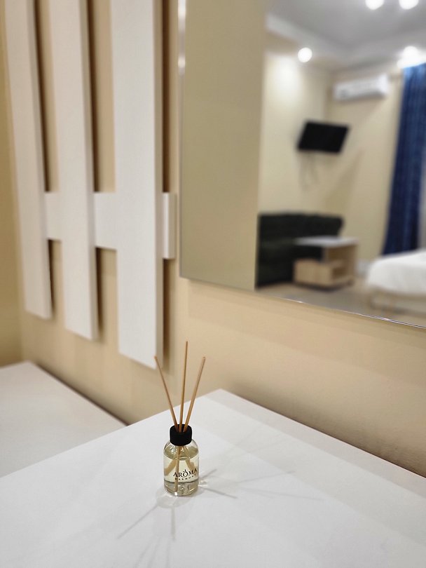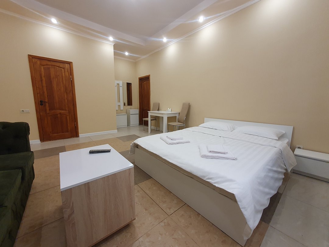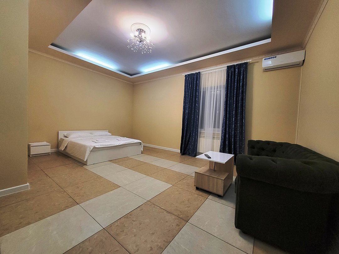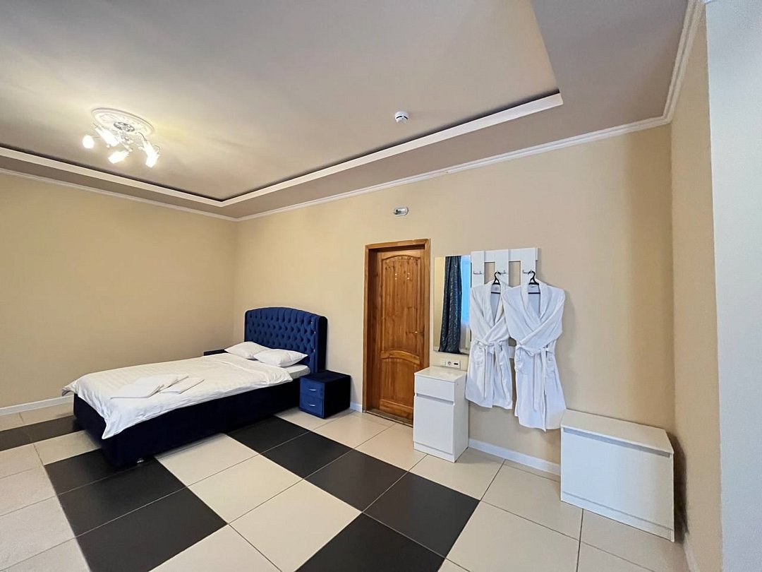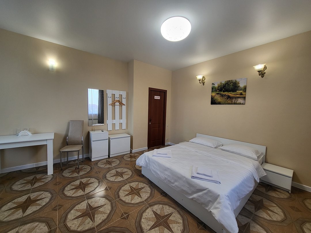 В номере: двуспальная кровать, санузел с душем, кондиционер, холодильник, кабельное ТВ, свежее постельное белье и полотенца, Wi-Fi интернет, халаты, бритвенные, гигиенические наборы.