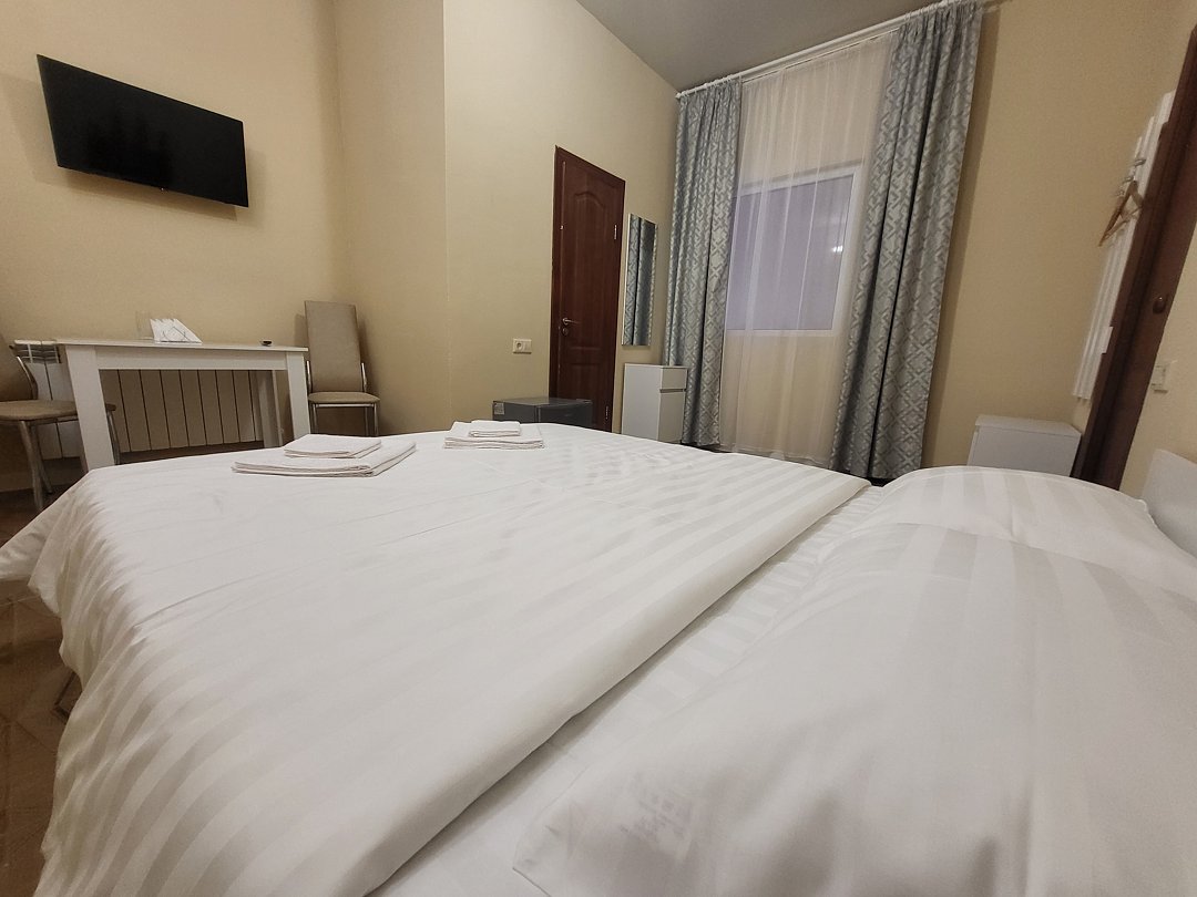 В номере: двуспальная кровать, санузел с душем, кондиционер, холодильник, кабельное ТВ, свежее постельное белье и полотенца, Wi-Fi интернет.