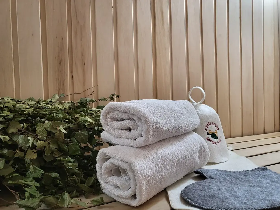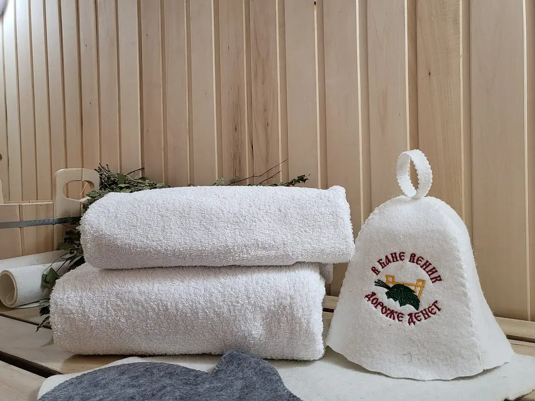 Гости могут приобрести разнообразные банные принадлежности, такие как веники, шапки, соль, тапочки и халаты, а также полотенца. Кроме того, доступны напитки и закуски для дополнительного комфорта.