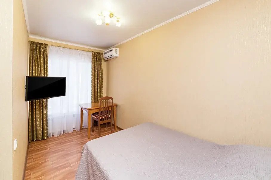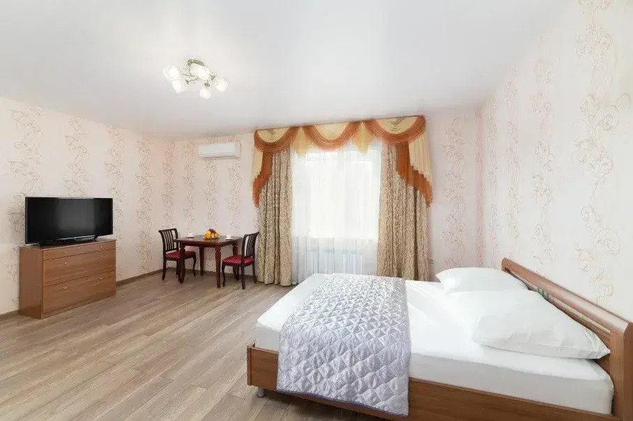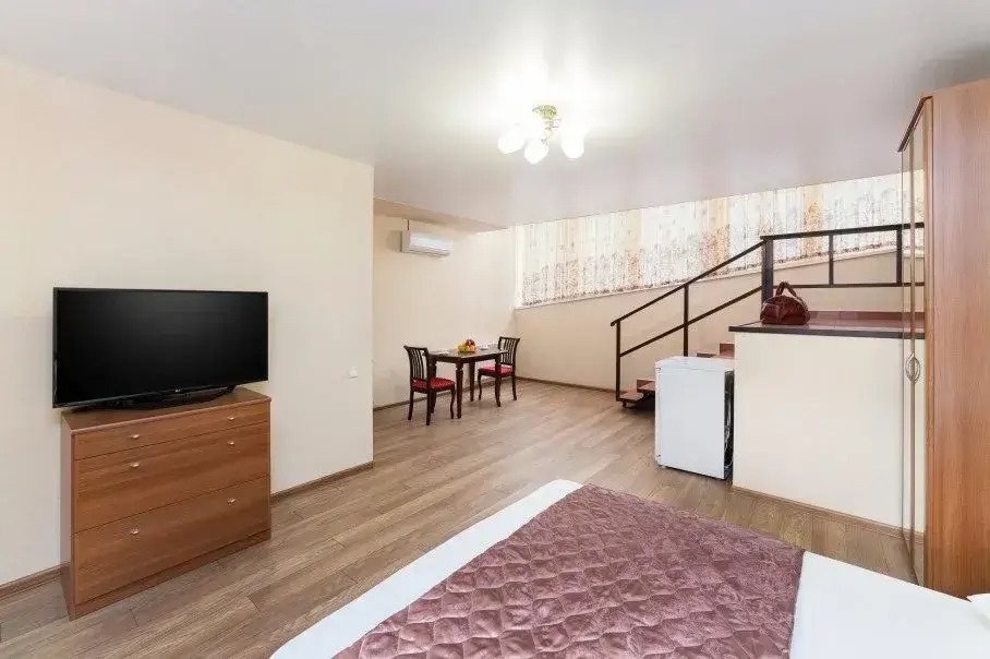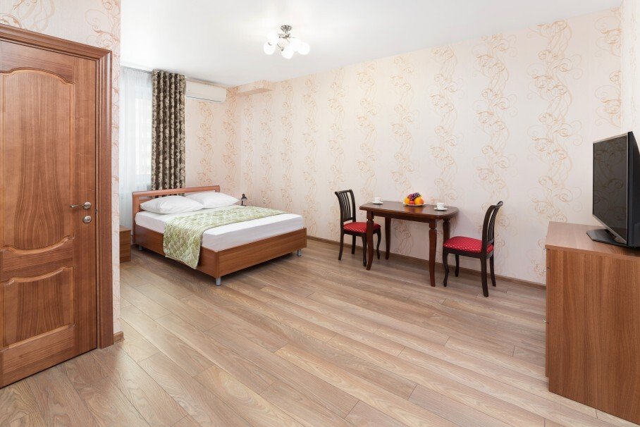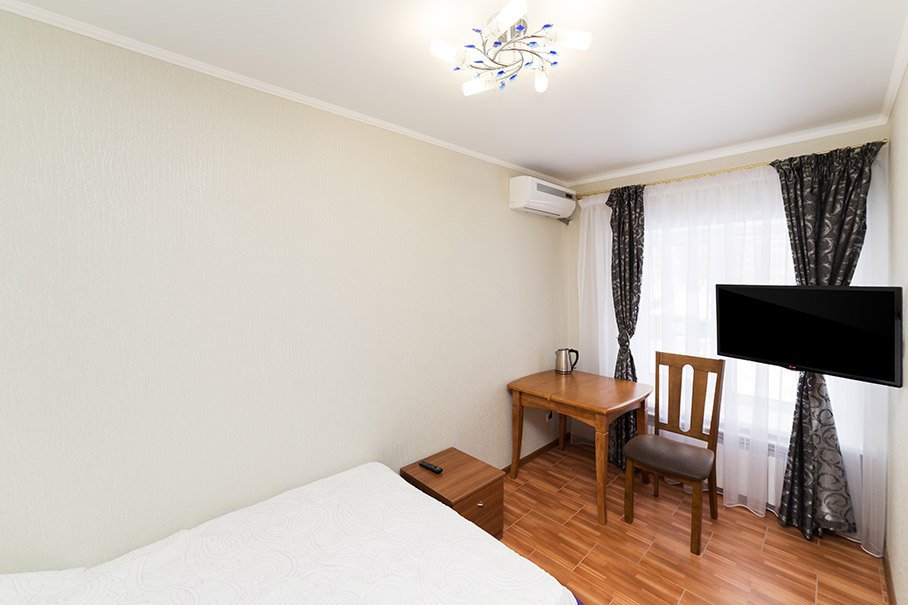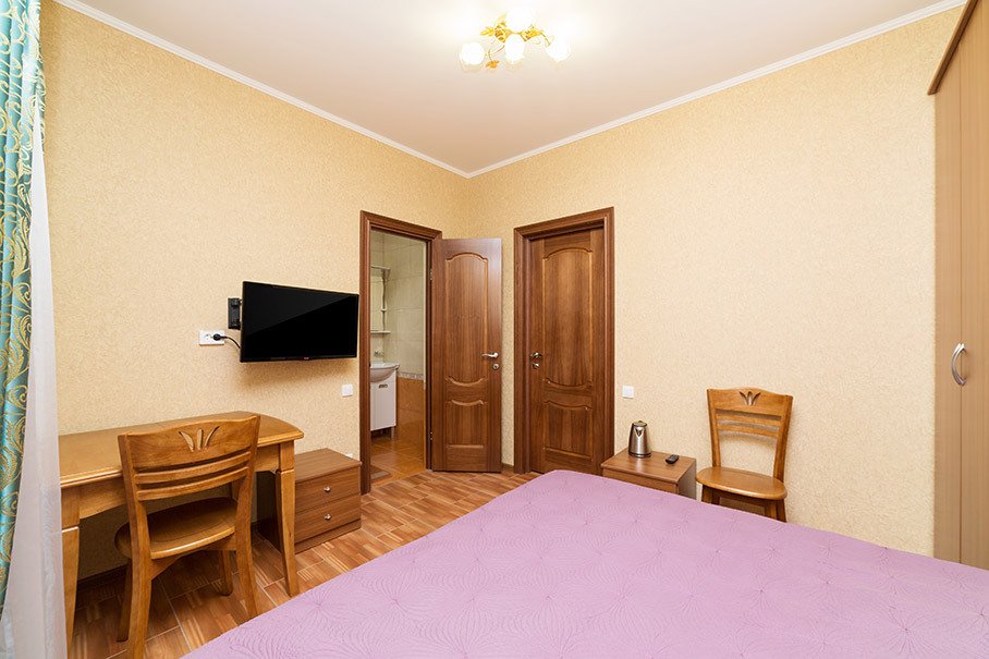 Номер уютно обставлен и оснащён необходимым, чтобы отдохнуть после долгого и насыщенного дня. Имеются телевизор и халат. Оснащение зависит от выбранной категории номера.
