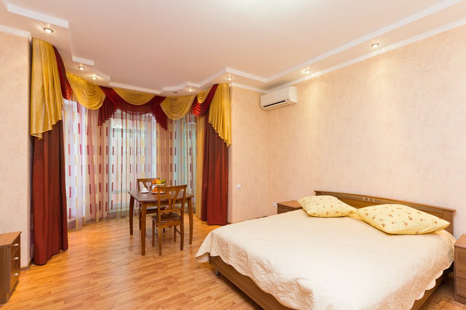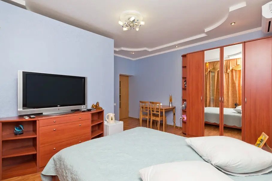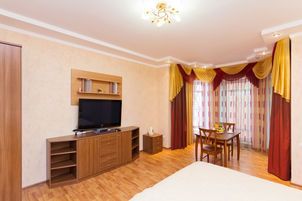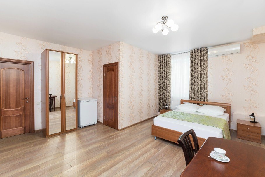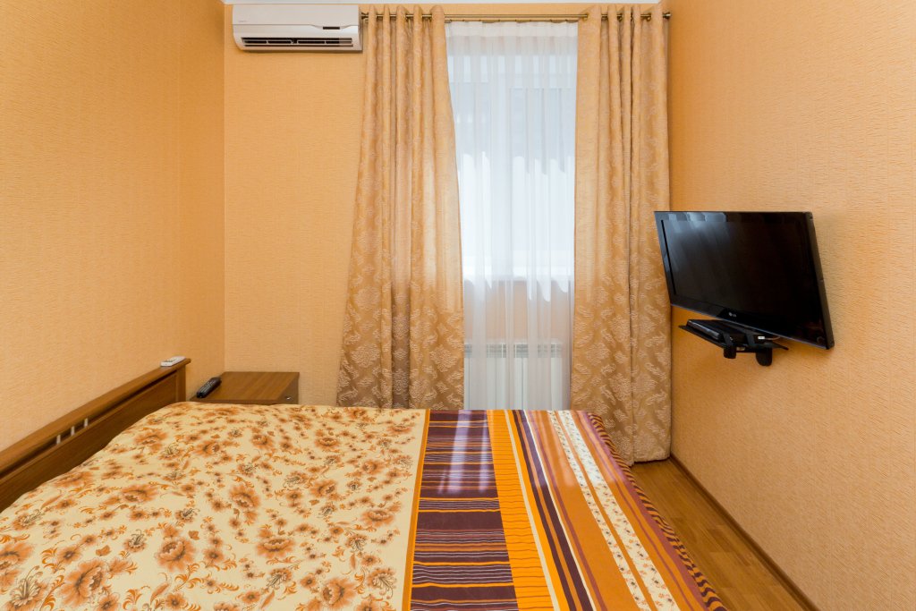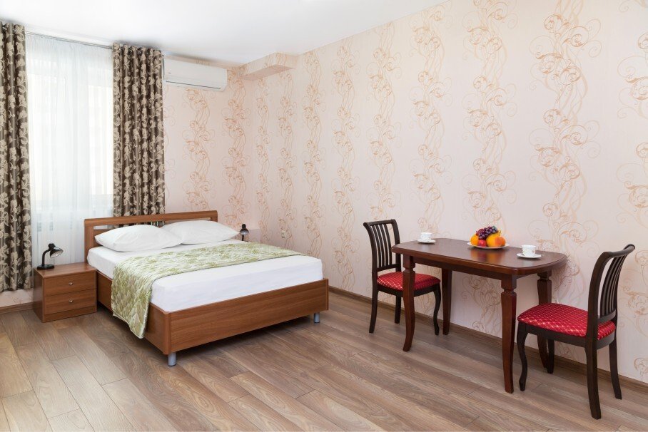 Номер уютно обставлен и оснащён необходимым, чтобы отдохнуть после долгого и насыщенного дня. Имеются телевизор и халат. Оснащение зависит от выбранной категории номера.