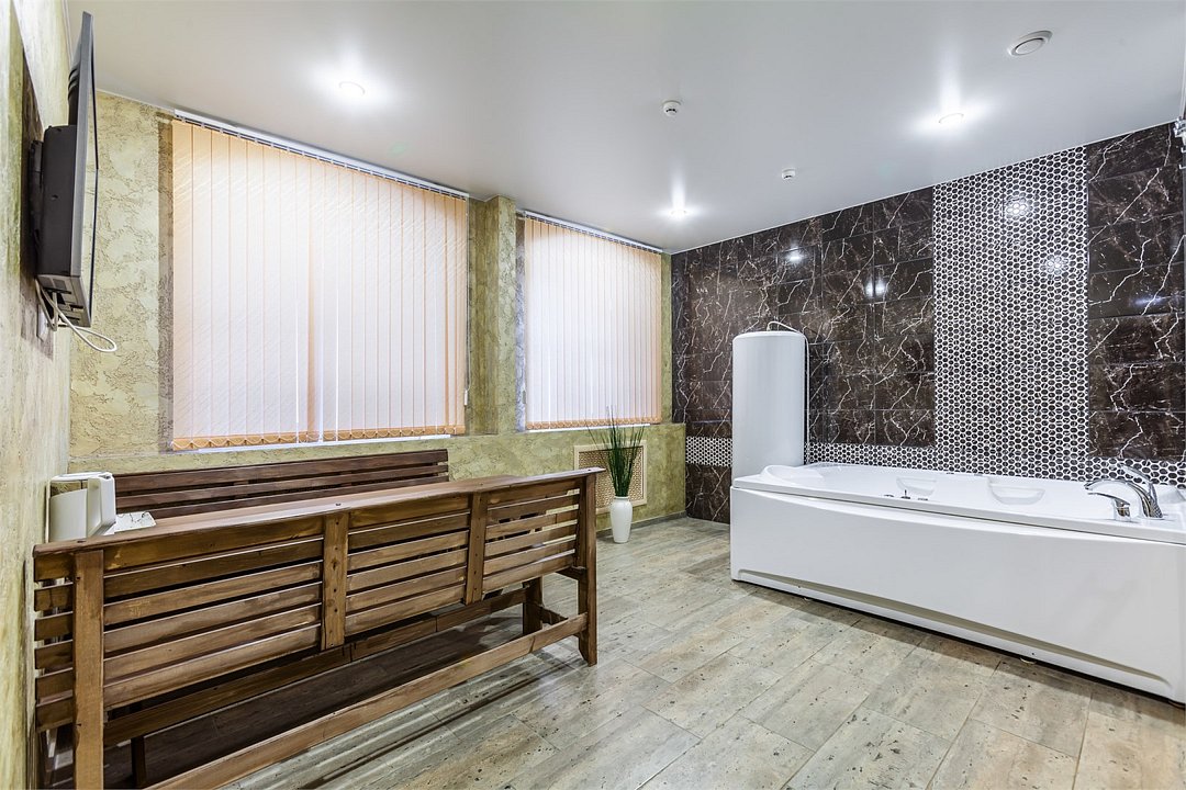 Номер состоит из 2 комнат в одной из которых расположены джакузи и личная парная, час которой включен в стоимость проживания. Более подробную информацию о формате работы парной Вы можете уточнить на стойке регистрации.Услуги и удобства