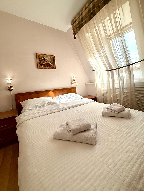 Для вашего комфорта гостиничный комплекс предлагает современные коммуникации и дизайнерски оформленные номера. На территории работает охраняемая парковка, услуги прачечной. Гости могут пользоваться Wi-Fi, заказывать такси и посещать оздоровительный центр с финской сауной, бассейном и бильярдной.
