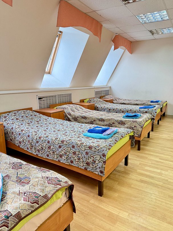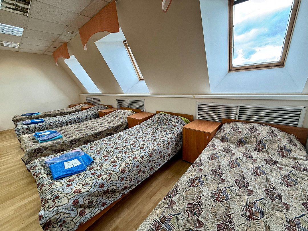 В номере 4 кровати, тумбочка, шкаф для одежды.