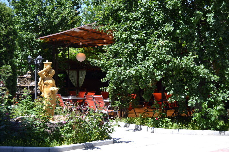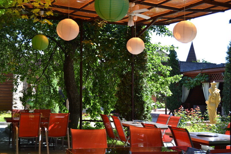 Летняя терраса, расположенная в парковой зоне, имеет удобный подъезд и охраняемую стоянку. Здесь вы сможете провести вечер в кругу друзей, семейный ужин или же насладиться веселой вечеринкой, будь то юбилей или свадьба — любое мероприятие станет уникальным под открытым, звёздным небом, в окружении роскошных роз, деревьев и фонтанов с неизменным, высоким уровнем сервиса.